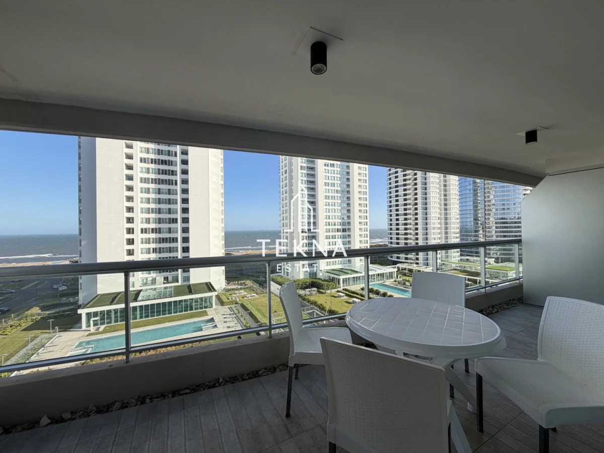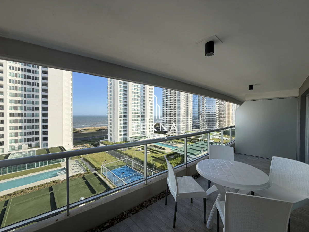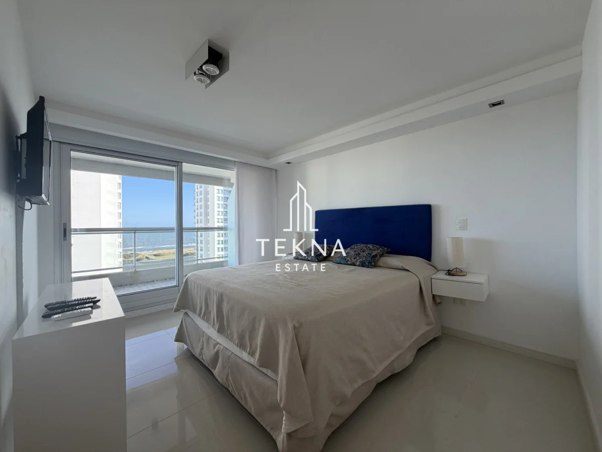 Esta unidad tiene dos dormitorios, ambos en suite y un total de 3 baños. La entrada desemboca en el living-comedor que goza de un muy bien espacio y de una vista espectacular a la playa brava. El balcon, ademas de ser muy amplio, conecta el dormitorio principal con el living y cuenta también con una vista al mar espectacular. La cocina definida esta super equipada y goza de un espacio considerable, también tiene desayunador y salida a un segundo balcón que contiene parrillero propio. A su vez, cuenta con garage en subsuelo, muy amplio y cómodo.