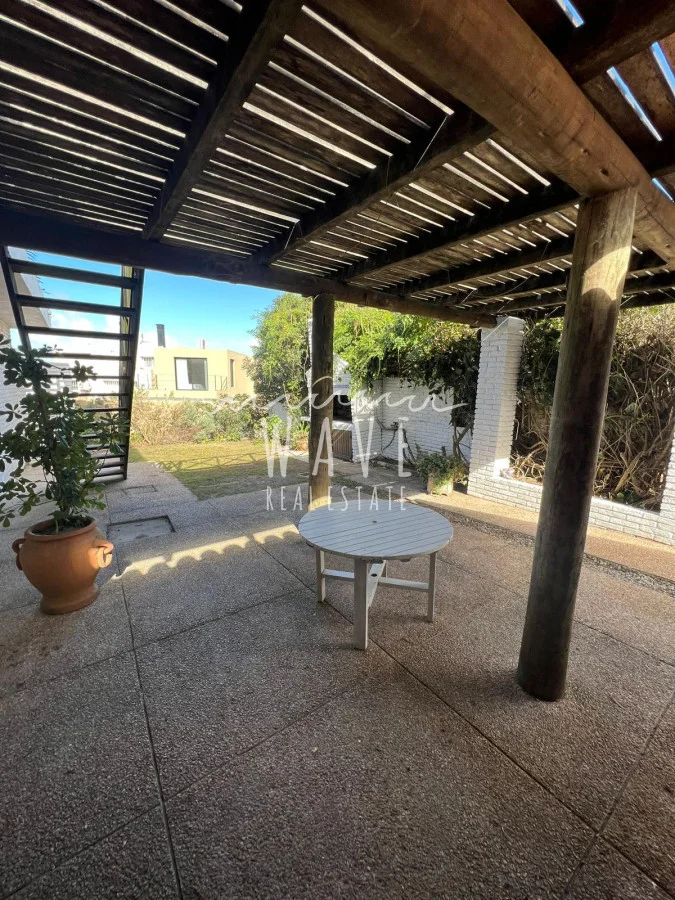 La Barra, cerca de todo y alejada del ruido, a metros de la playa, en una callesita hermosa, casa en dos plantas, con terraza con vista al mar, jardín con parrillero. En la planta baja, living comedor con estufa a leña, dos dormitorios y dos baños, cocina. Planta alta, suite principal con vista al mar. Tiene dependencia de servicio con baño independiente.