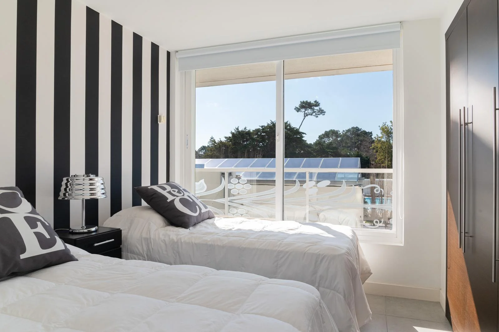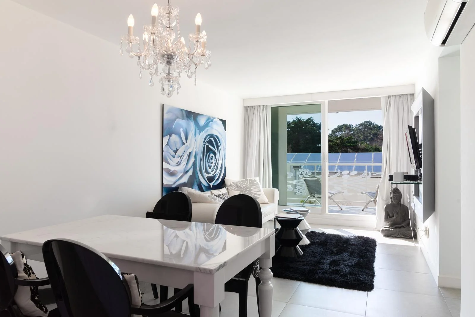 Todo el departamento se encuentra en perfecto estado, equipado con mobiliario Philip Stark en el piso 3, orientación Este con vista a la pileta, casi sin uso. Nunca se alquiló.
