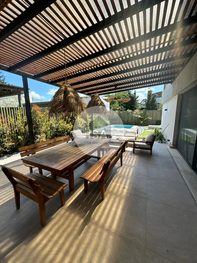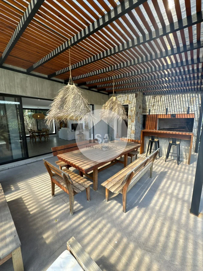 HSA Propiedades ofrece en venta una espectacular casa de 4 dormitorios ubicada en Manantiales, sobre la calle Las Pitangas y José Ignacio. La misma se encuentra implantada en un terreno de 400 m2 y se desarrolla en 185 m2 construidos de la siguiente manera: -Amplio Living comedor con estufa a leña y cocina integrada, contiguo a una gran barbacoa techada. -Cuatro dormitorios, siendo el principal en suite (con terraza y vista al mar). -Tres baños. -Amplio parque con piscina climatizada. Precios: Desde ***hasta ***USD 7200 Desde ***hasta ***USD 12.000 No dude en consultar. Referencia Interna : Tera-440