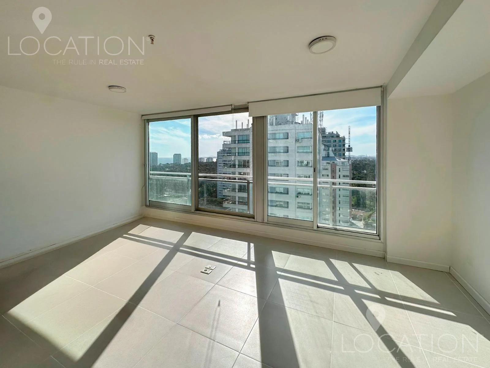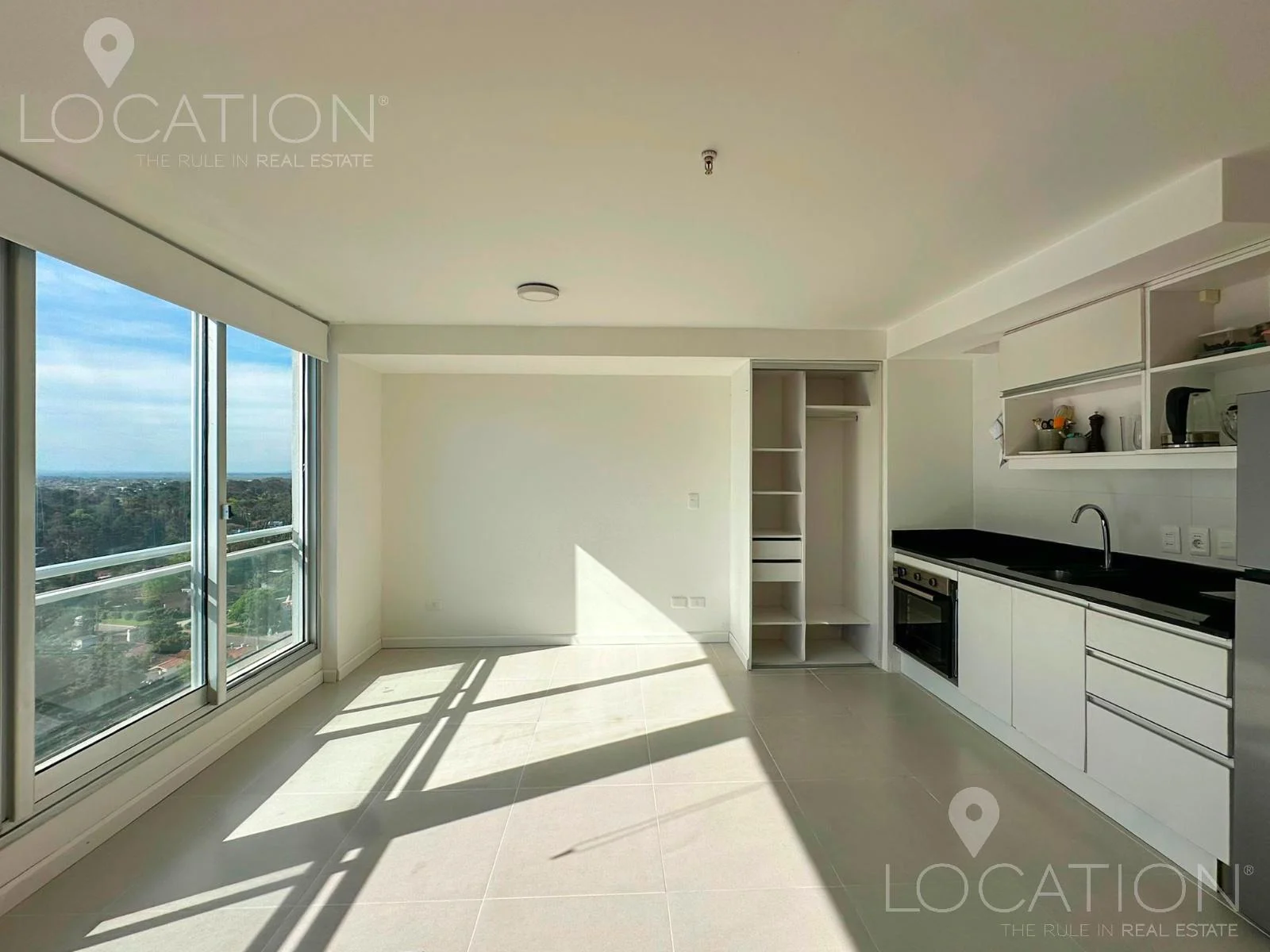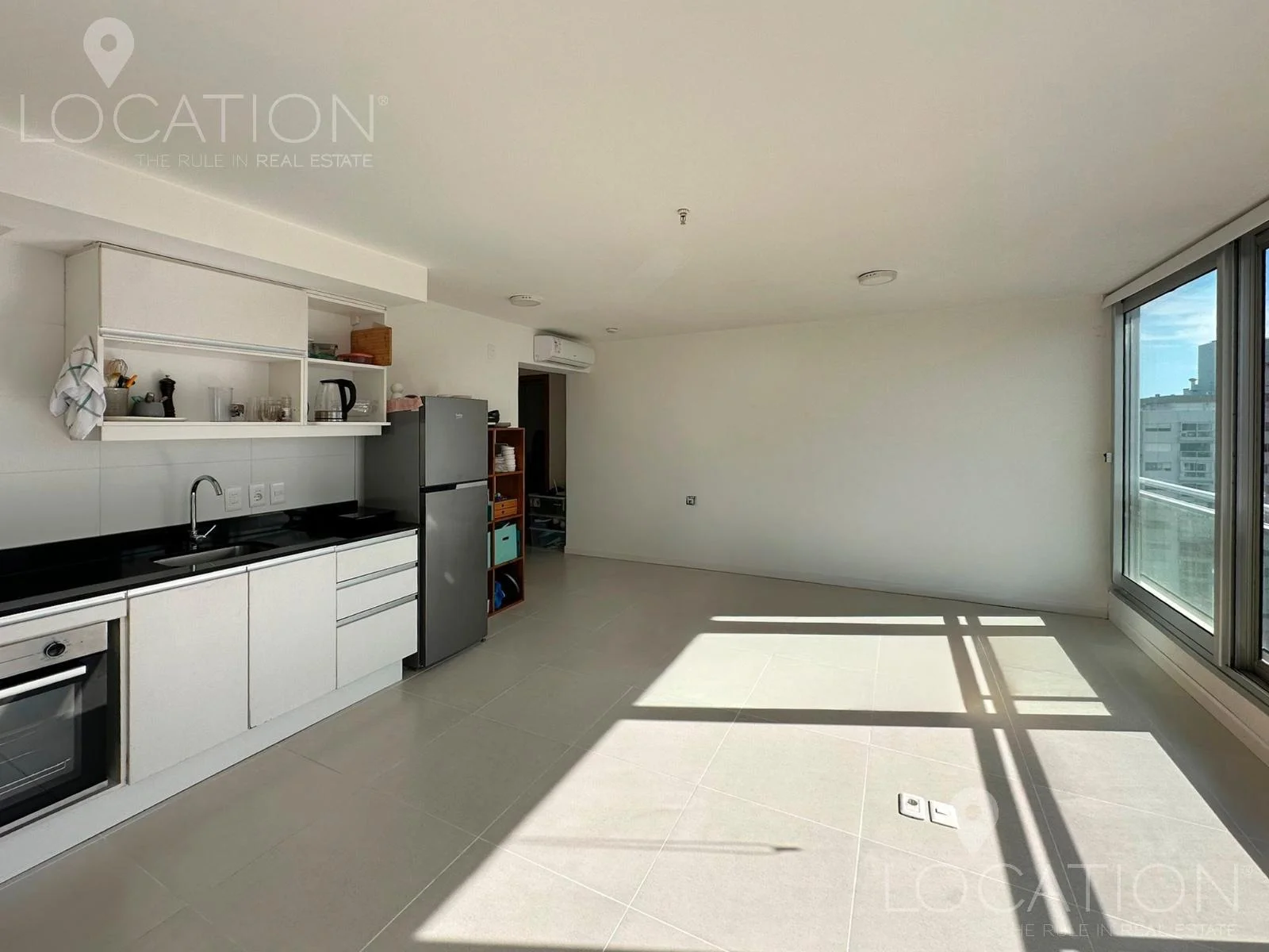 Apartamento moderno y luminoso, ubicado en un piso alto con grandes ventanales que ofrecen vista abierta al mar y a la ciudad.Cuenta con cocina integrada, placares y una distribución práctica que aprovecha muy bien el espacio.