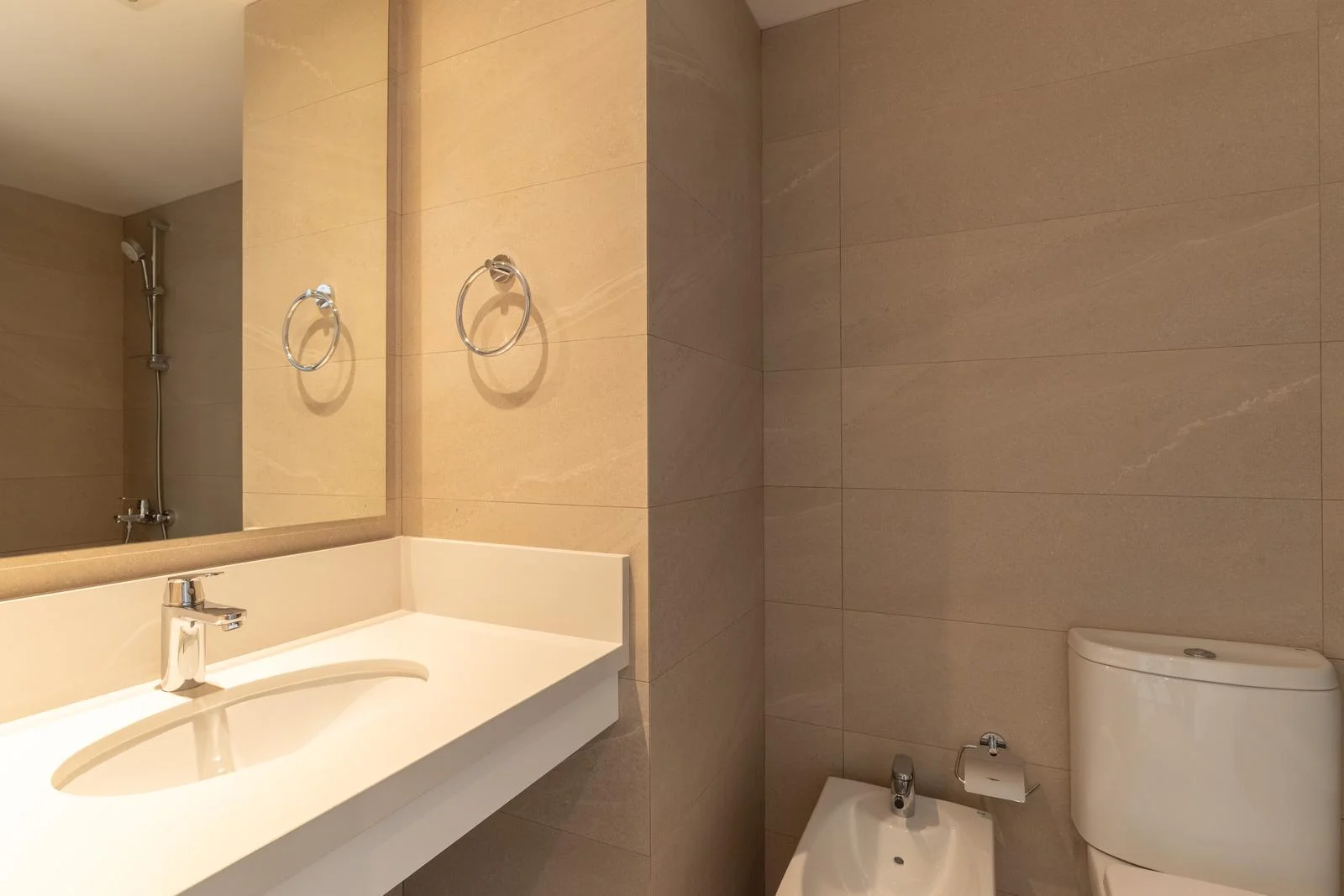 Cocina equipada con anafe, heladera con freezer, mini cava, microondas, horno, calienta platos y lavavajillas, espacio para desayunador. Lavadero con lavarropas y secarropas. Todos los equipamientos tanto de cocina como lavadero son marca Becko.