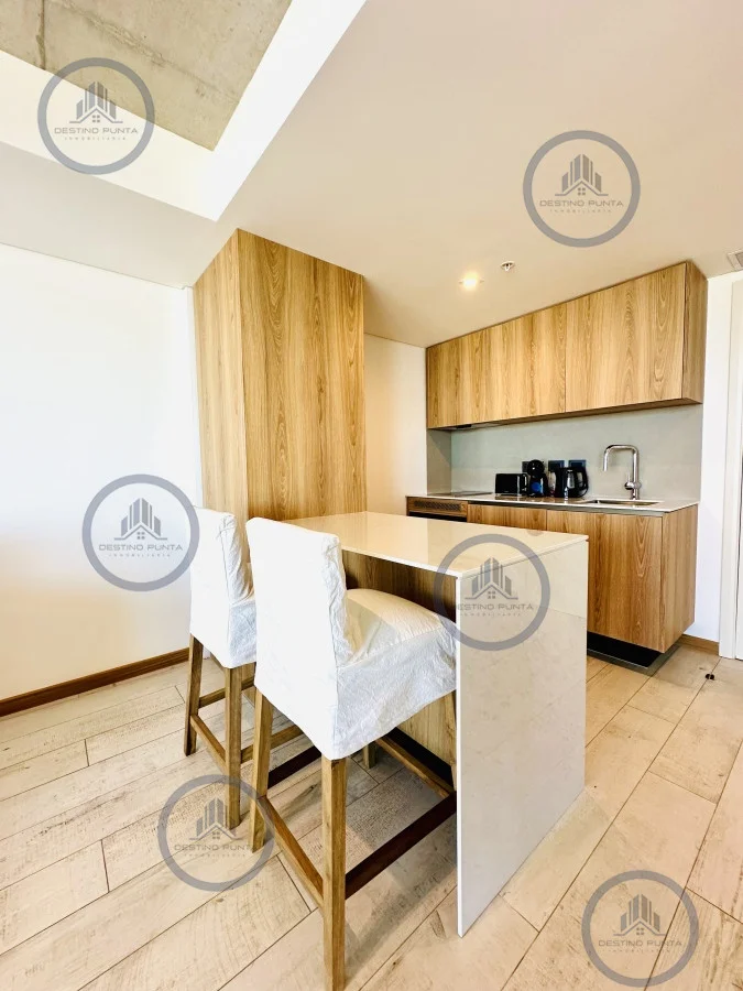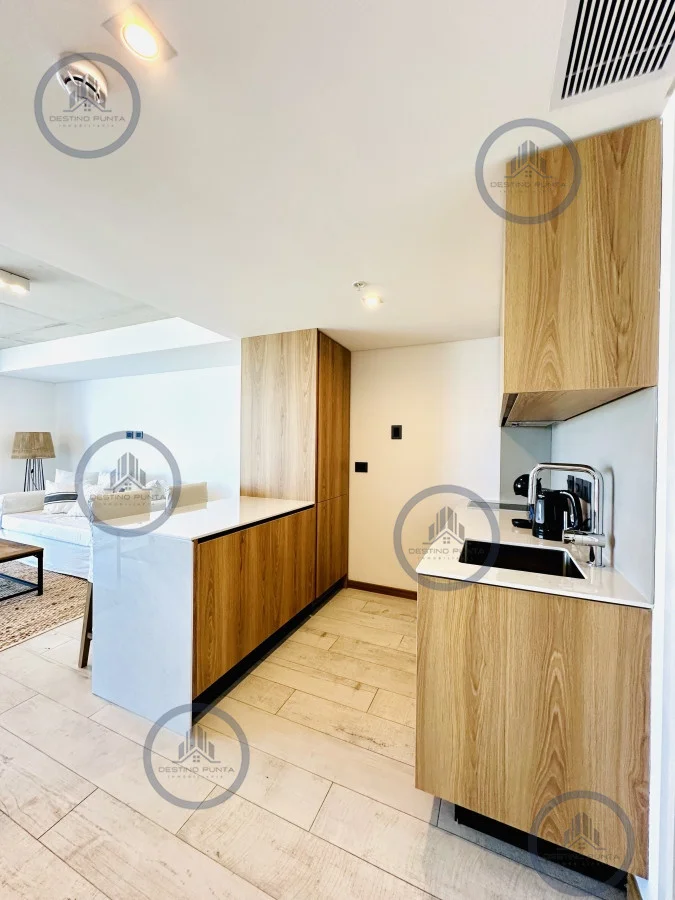 Apartamento piso alto monoambiente a estrenar. Terraza cómoda con vistas panorámicas hacia Playa Brava. Completamente equipado, se entrega con luz habilitada, muebles, electrodomésticos, vajilla y ropa blanca. El precio incluye garaje, gastos de alhajamiento y equipos de aire acondicionados instalados. Consulte con nuestros asesores***383 [email protected] destinopunta.com Referencia Interna : Tera-681