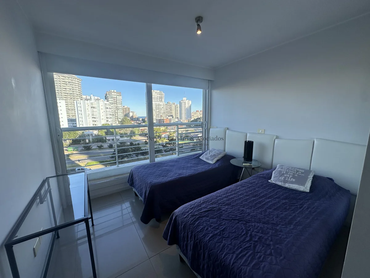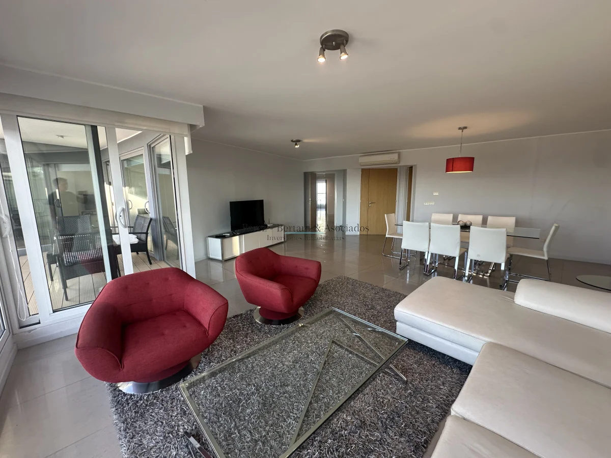 Alquiler y Venta de Apartamento en Mansa - Punta del Este Ubicado a 50 metros del Mar. Frente al Mar !! Orientación SurOeste Unidad de 3 Dormitorios 4 Baños 3 Suites , con capacidad para 6 personas , 5 camas Cocina : Bien Equipada, Living , Comedor , Living Comedor , Servicio de Mucamas , Servicio de Playa , Sauna ,Piscina Si Consulte con nuestros asesores. Referencia Interna : Tera-1386