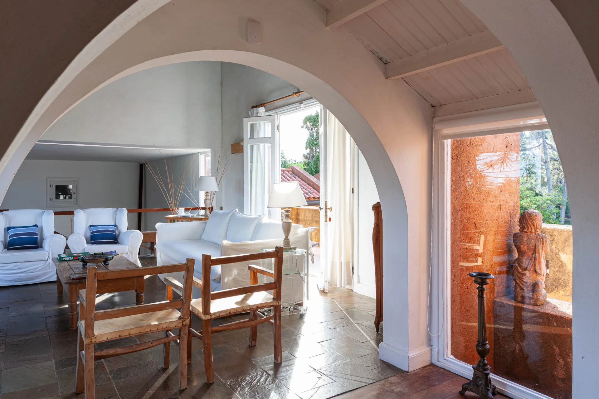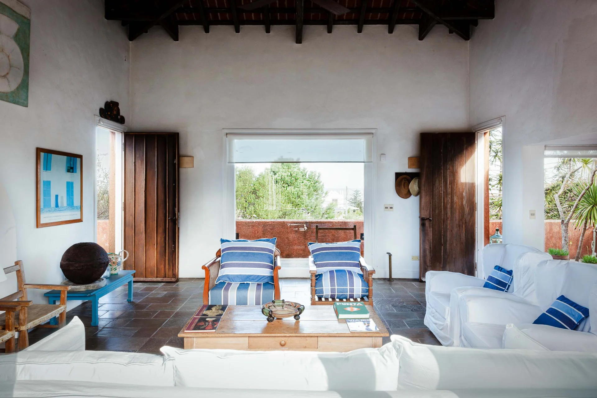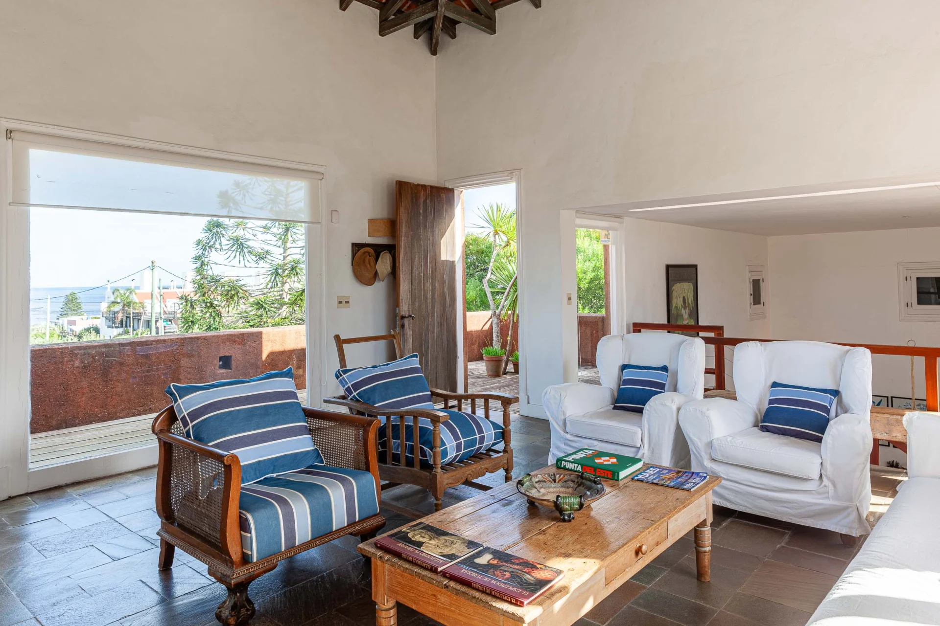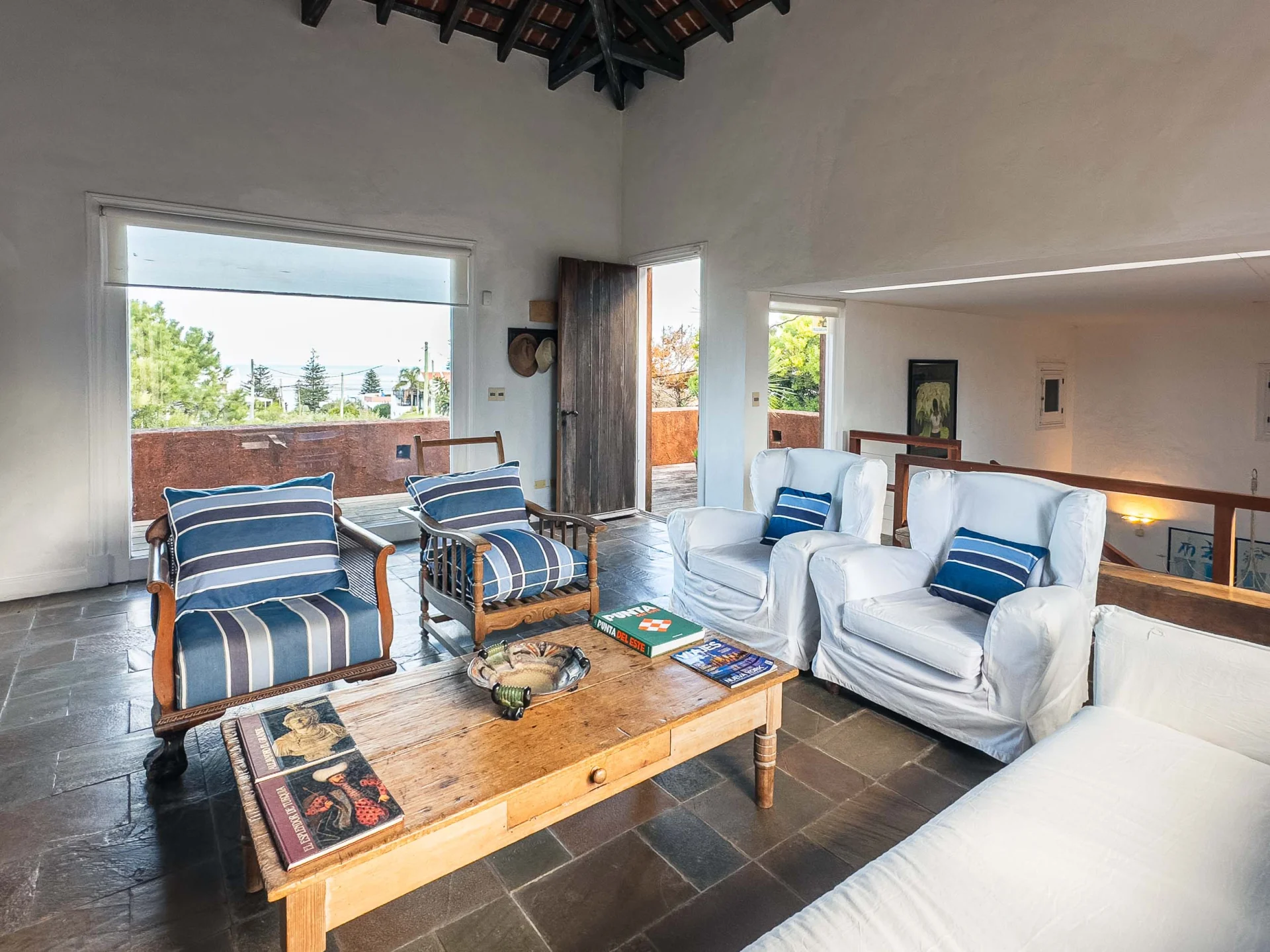 Planta alta: Se encuentra un generoso living con grandes ventanales que inundan de luz el ambiente y se abren hacia terrazas con vistas al mar y al entorno natural. Una sala de estar pensada para momentos de lectura o TV.