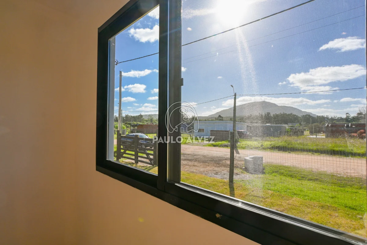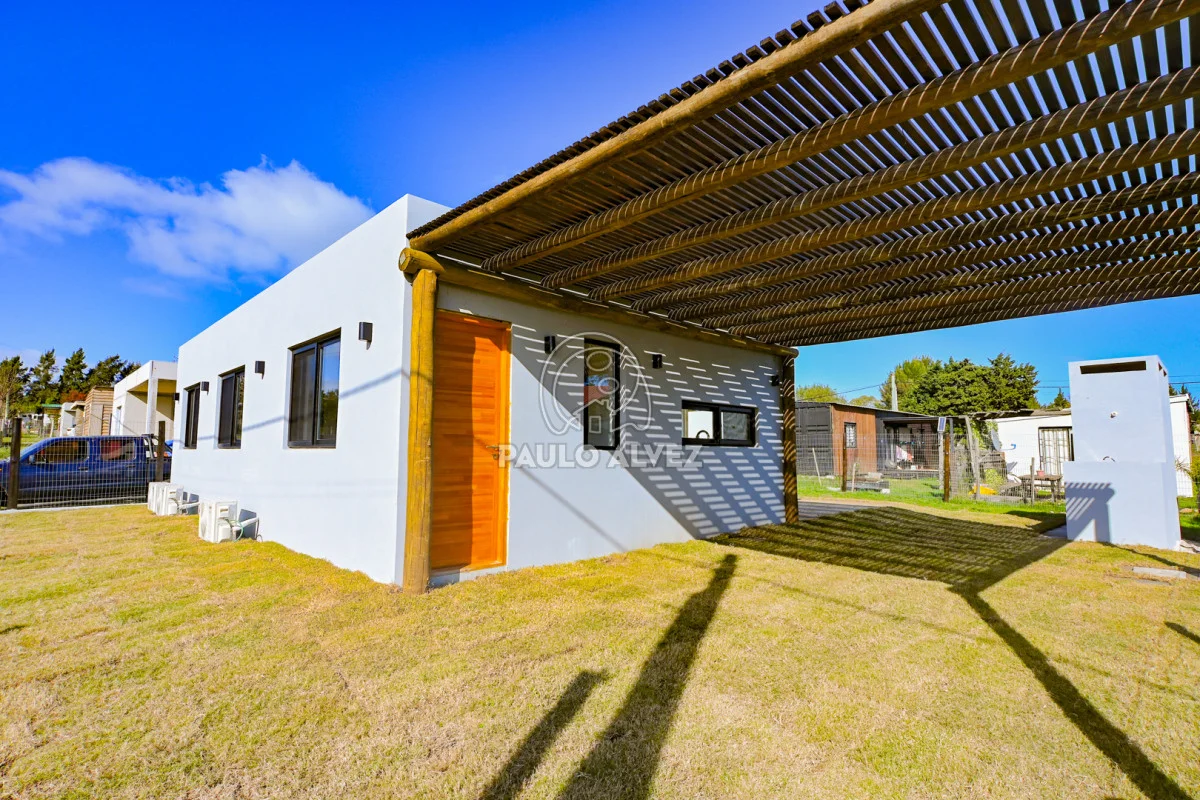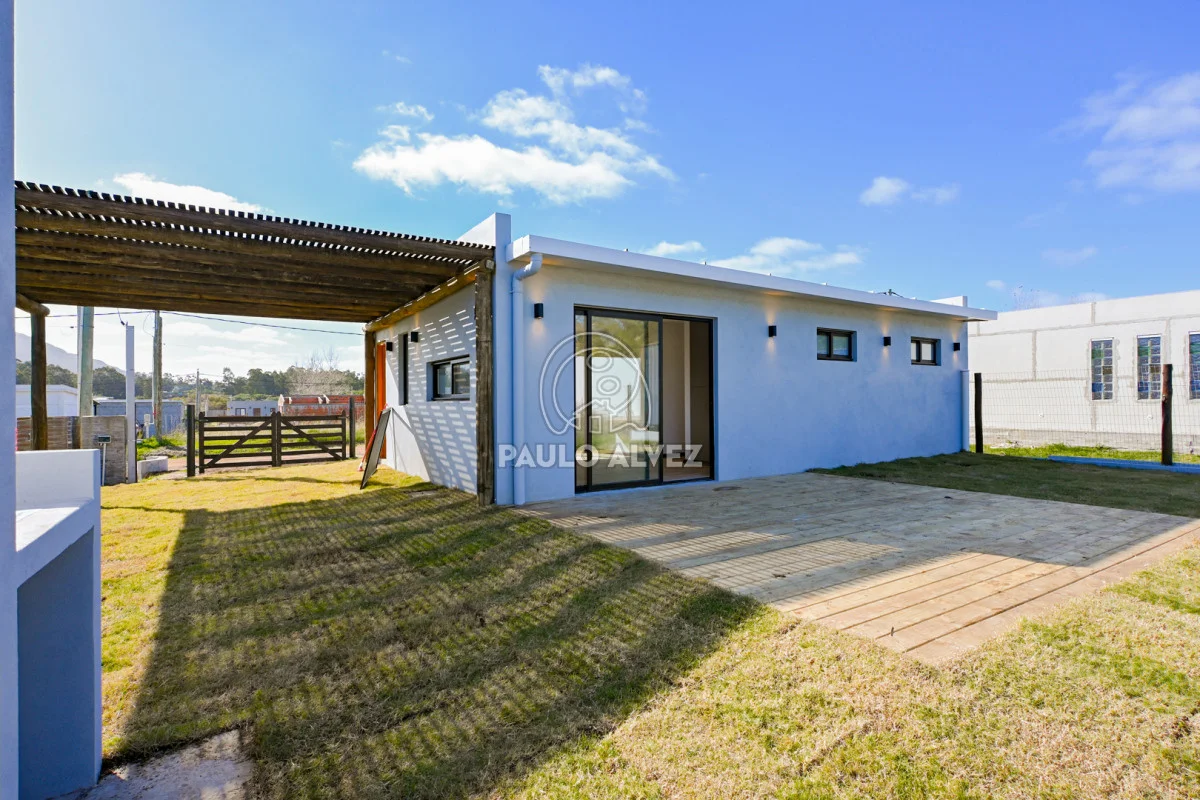 Excelente casa a estrenar en Barrio Tierra Calma. Entorno tranquilo y agradable durante todo el año. Emplazada sobre predio de 300 m² completamente cercado, cuenta con 58m² construidos en sistema de Steel Framing, paredes interiores en yeso, techo de isopanel con cielorraso, pisos en porcelanato y aberturas en aluminio. Distribución funcional y cómoda: luminoso living-comedor, cocina integrada con muebles bajo y sobre mesada de excelente calidad. Pasillo que conecta a un baño completo y dos dormitorios; el principal con baño en suite. Desde la cocina se accede al jardín, ideal para disfrutar de la tranquilidad del entorno. Importante oportunidad de adquirir una casa a estrenar en un entorno natural y apacible. Coordina tu visita y conoce esta excelente opción.