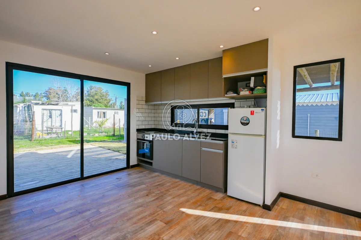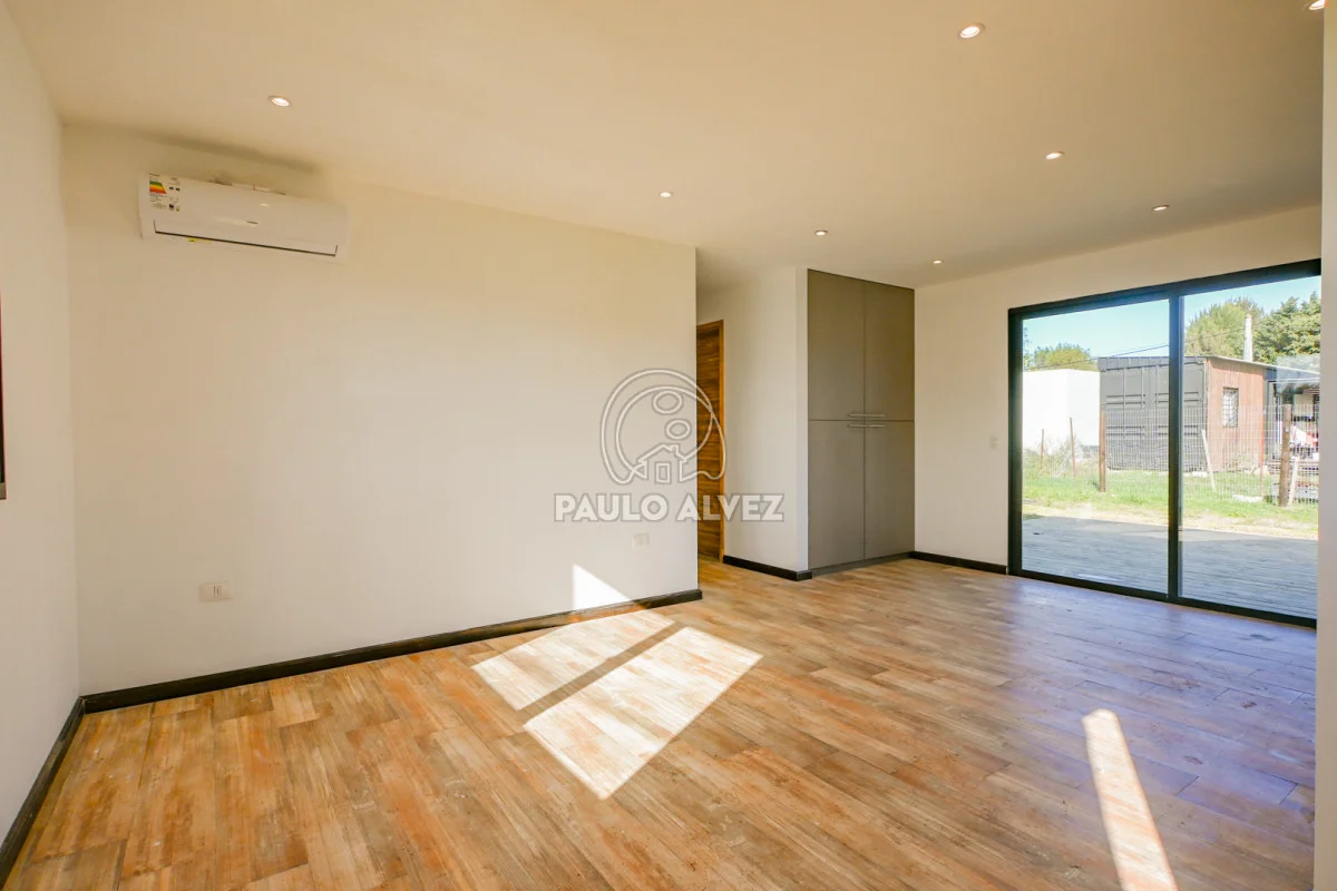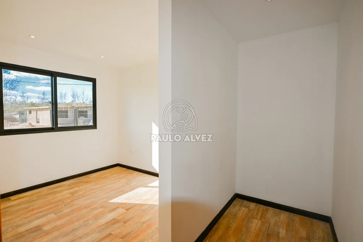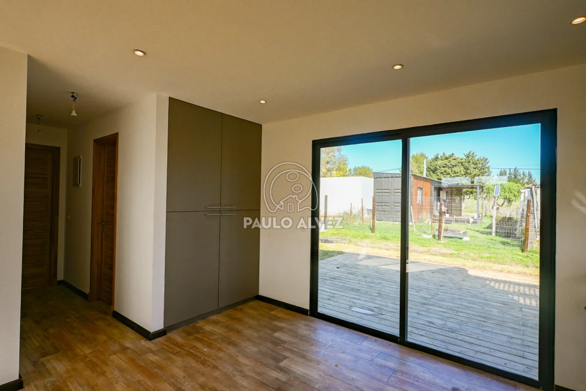 Excelente casa a estrenar en Barrio Tierra Calma. Entorno tranquilo y agradable durante todo el año. Emplazada sobre predio de 300 m² completamente cercado, cuenta con 58m² construidos en sistema de Steel Framing, paredes interiores en yeso, techo de isopanel con cielorraso, pisos en porcelanato y aberturas en aluminio. Distribución funcional y cómoda: luminoso living-comedor, cocina integrada con muebles bajo y sobre mesada de excelente calidad. Pasillo que conecta a un baño completo y dos dormitorios; el principal con baño en suite. Desde la cocina se accede al jardín, ideal para disfrutar de la tranquilidad del entorno. Importante oportunidad de adquirir una casa a estrenar en un entorno natural y apacible. Coordina tu visita y conoce esta excelente opción.