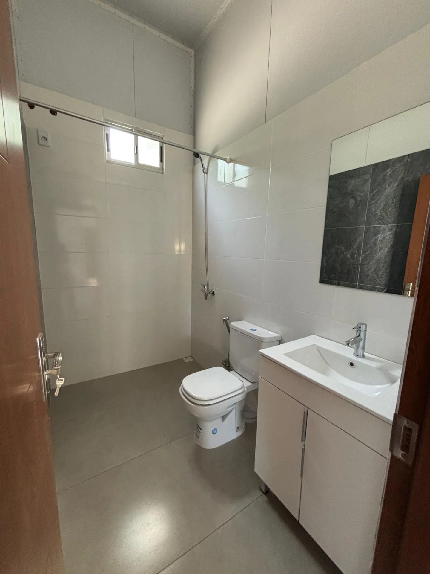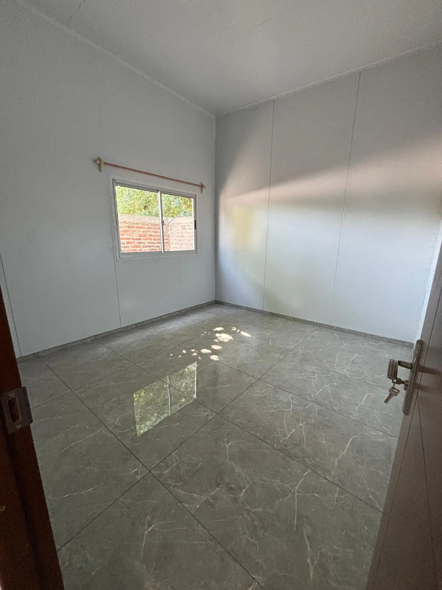 Casa para alquilar a estrenar. Cuenta con living comedor y cocina integrados, dos dormitorios, un baño, entrada para autos, parrillero, amplio patio.