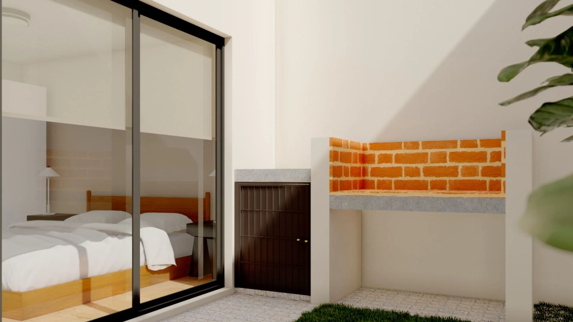 2 dormitorios (principal 10 m ², secundaria 7,72 m ²), 1 living comedor cocina 26,35 m ², 1 baño 2,5 m ² y un patio de 17,55m² que cuenta con parrillero; cada apartamento tiene un total de 65,45m².