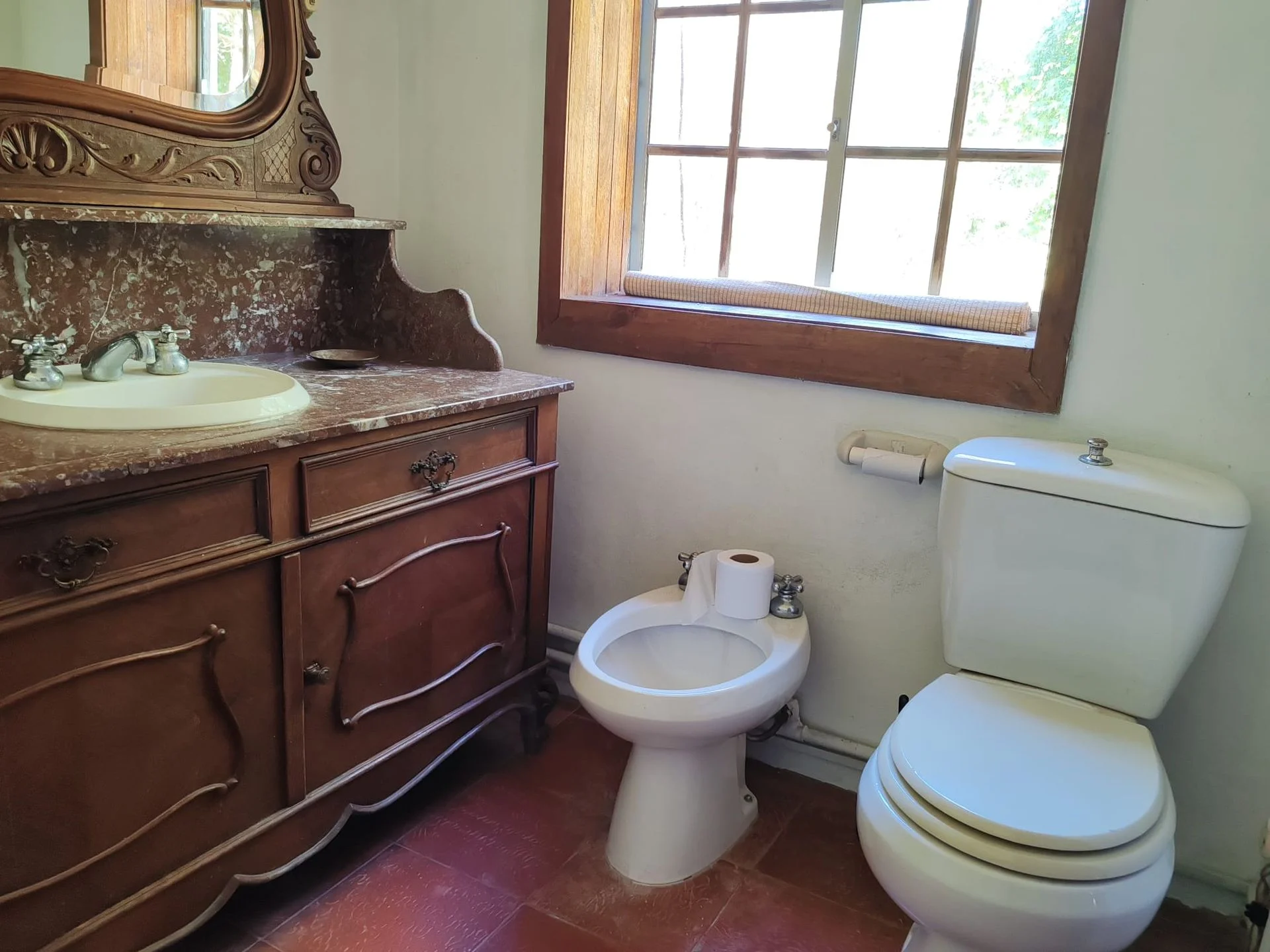 Casa principal en madera presenta un estado general bueno y distribuye estratégicamente 6 ambientes, incluyendo 3 habitaciones y 2 baños completos. En el exterior cuenta con un deck con parrillero a refaccionar.