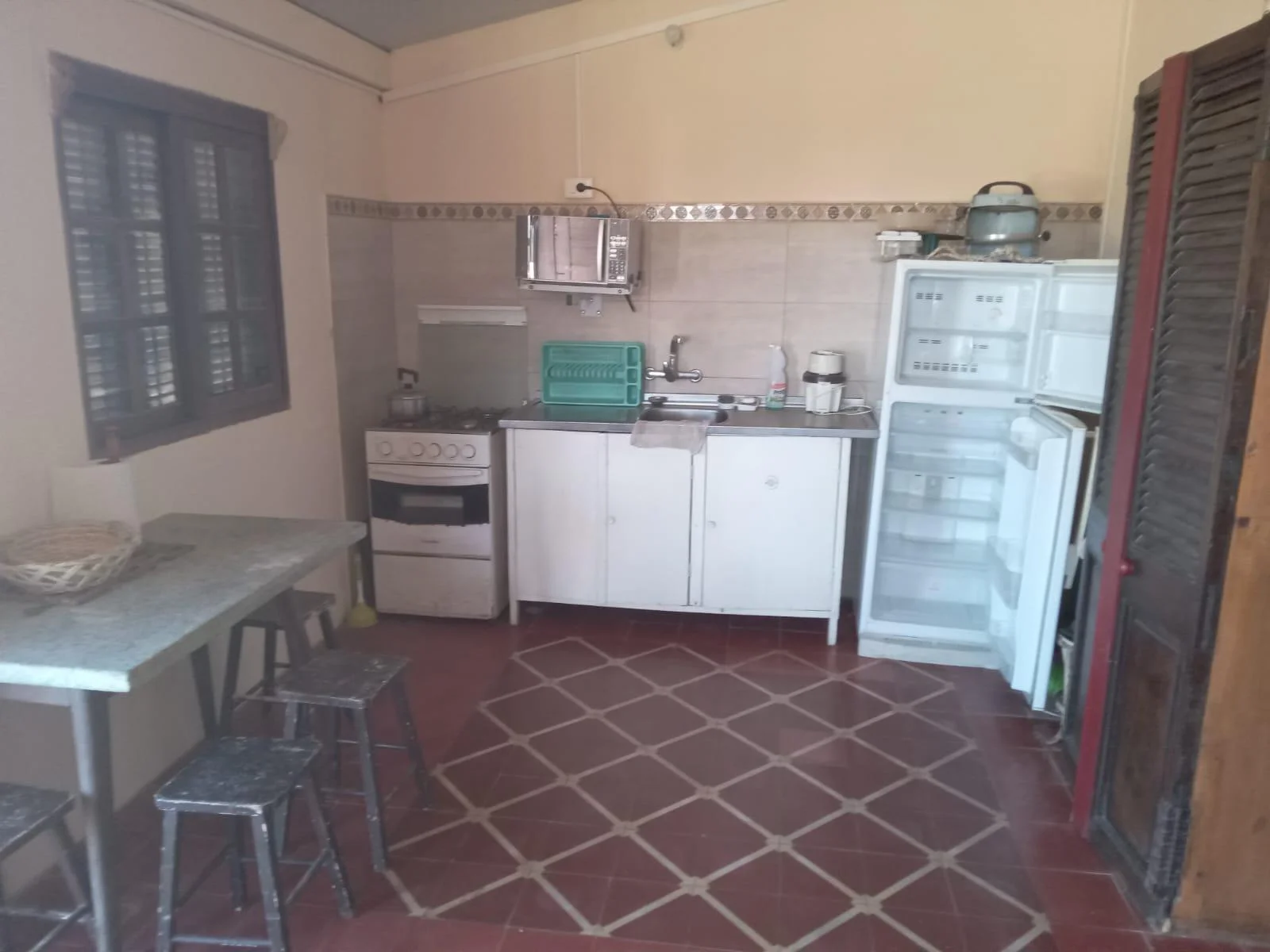 En la sala hay un sillón cama y la cocina está integrada, equipada con heladera, cocina y microondas.