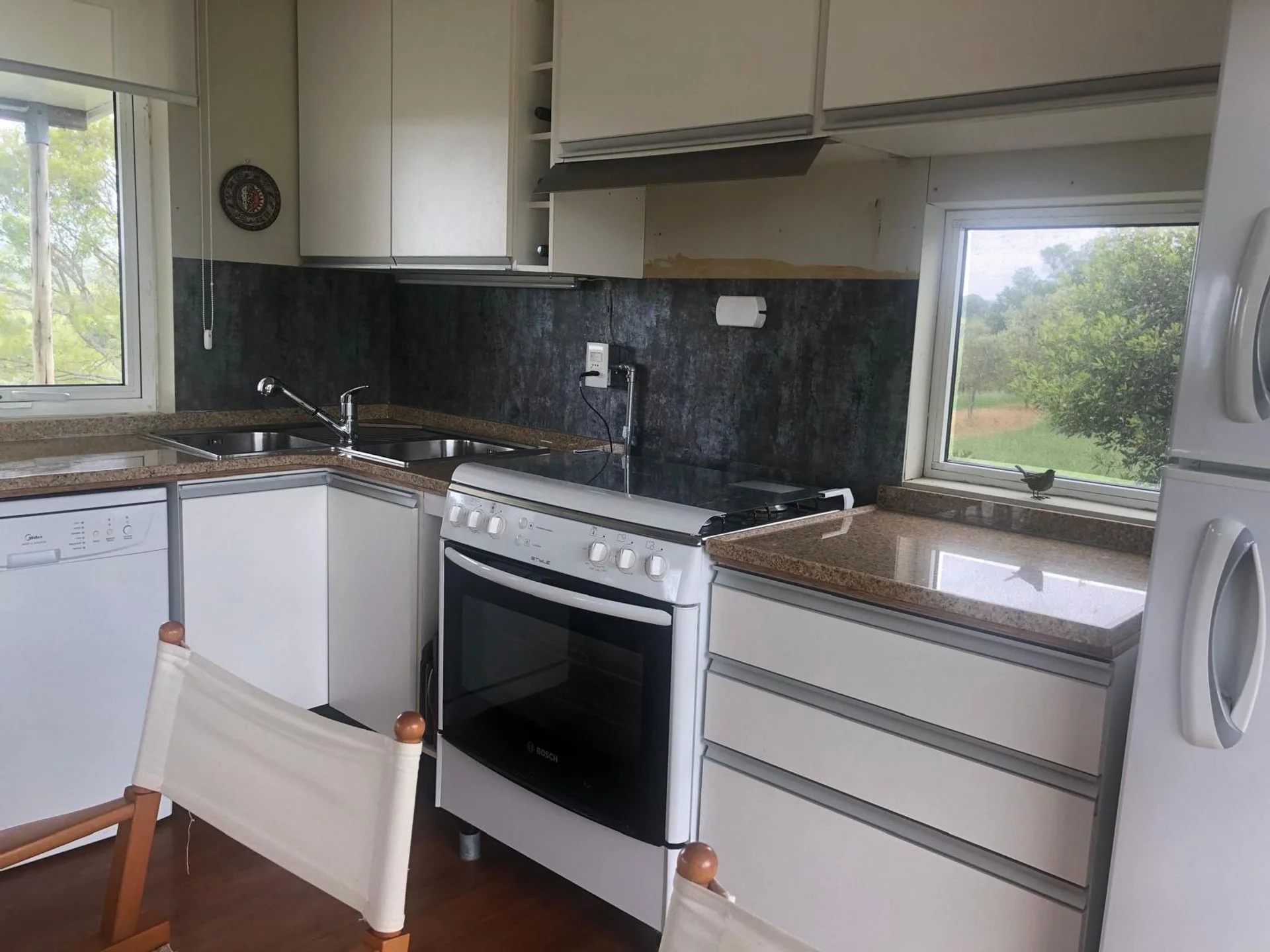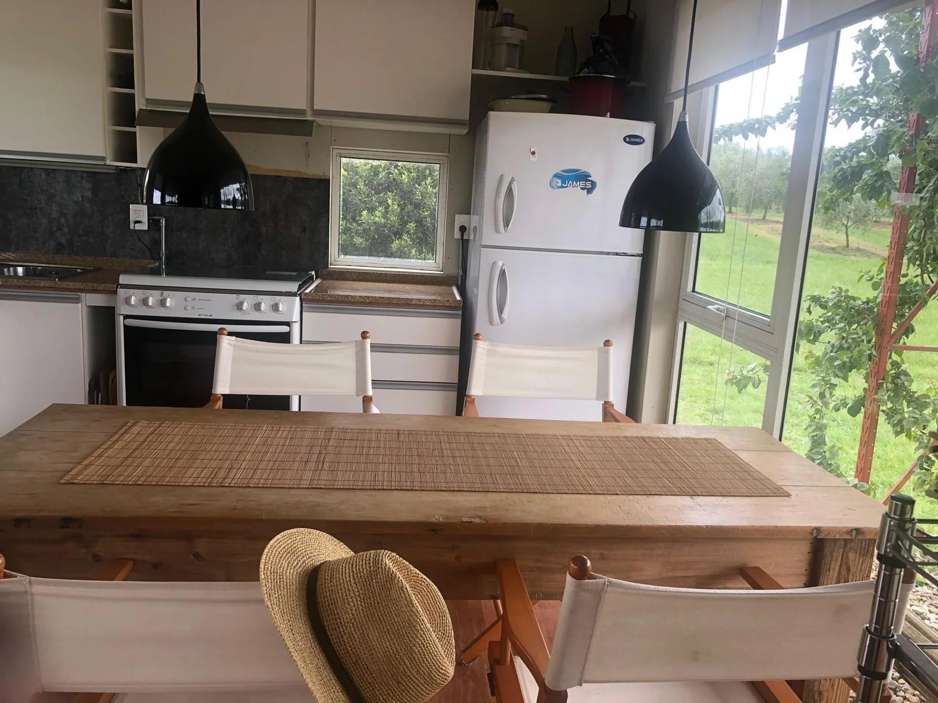 El predio cuenta con una casa con 3 dormitorios y 3 baños, living comedor y cocina integrados, calefacción y agua caliente central, totalmente equipada; rodeada de amplio jardín.