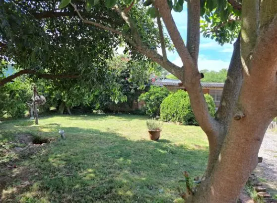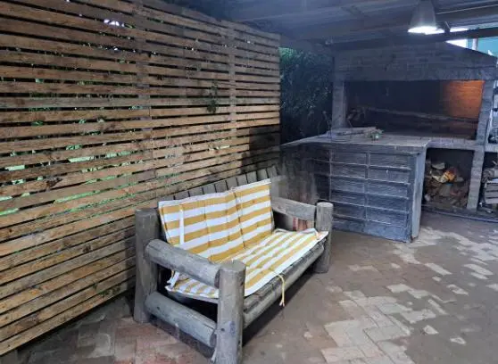 El jardín se encuentra al frente, con algún árbol autóctono (Higuerón, ombú, Palmera de butia). arboles cítricos (limón y naranjo), y hierbas aromáticas (romero, menta) siendo todo apto para el uso durante la estadía.
