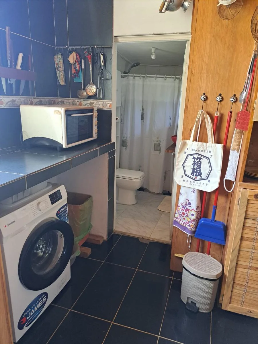 La propiedad posee un living comedor con cocina integrada, baño completo con agua caliente provista por calefon a gas, lo que permite una continuidad de agua caliente ilimitada. Dos dormitorios, con dos sommier singles el que da al frente y sommier King en el Principal.