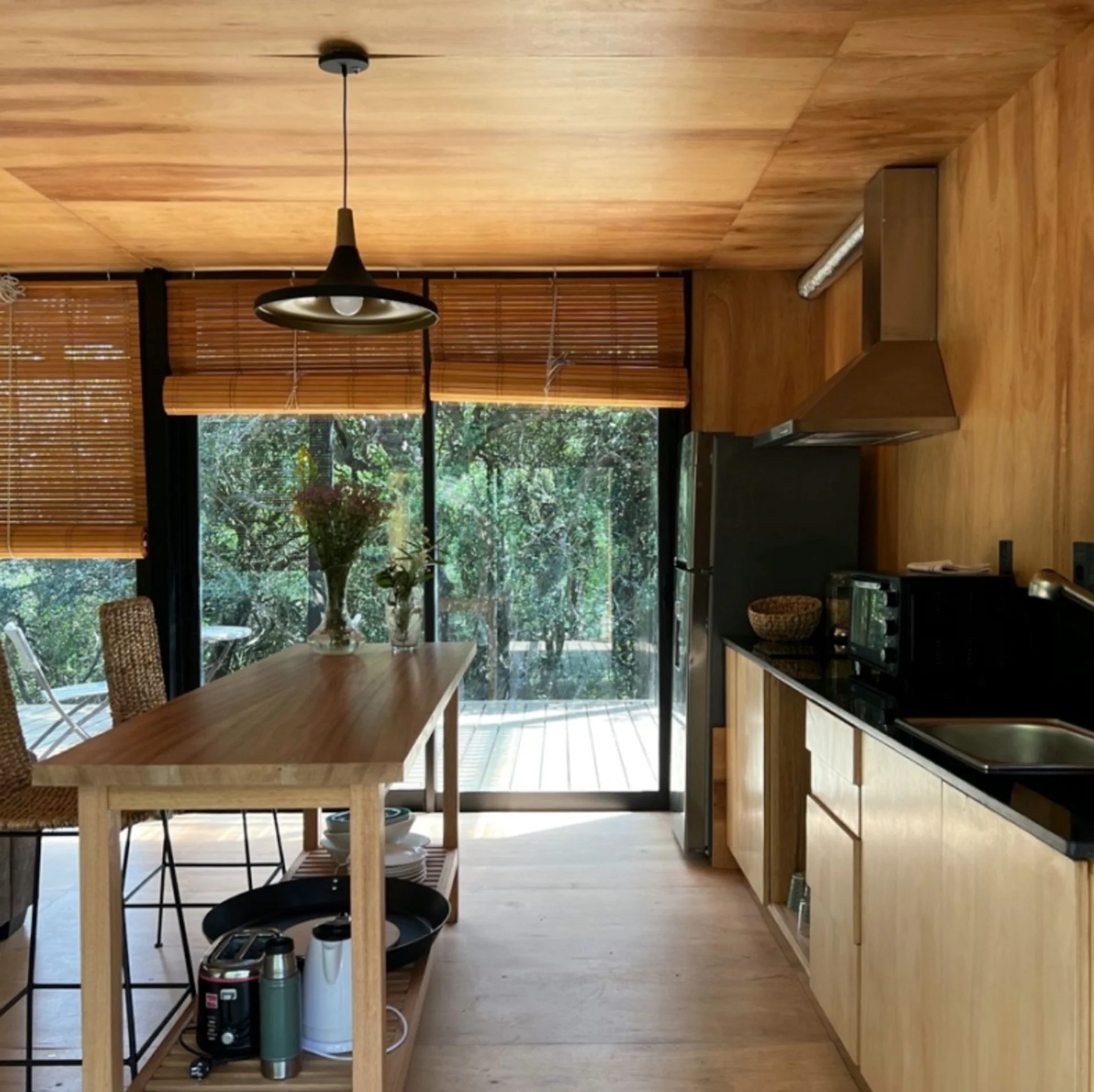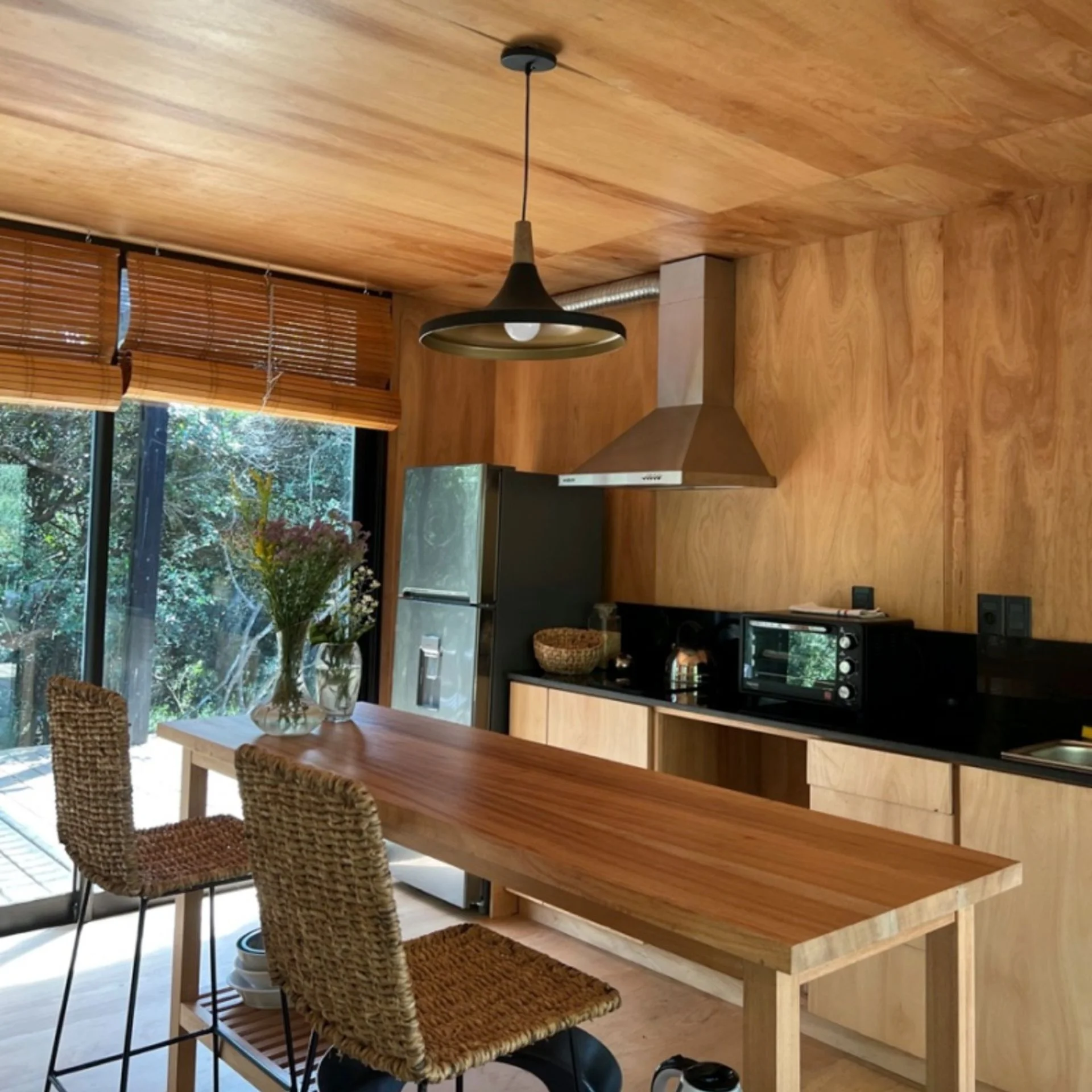 Ubicada sobre un terreno de 1275m2, rodeada de bosque, ideal para un descanso temporal o para vivir todo el año con absoluta privacidad.