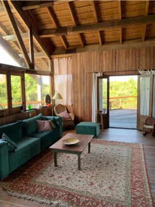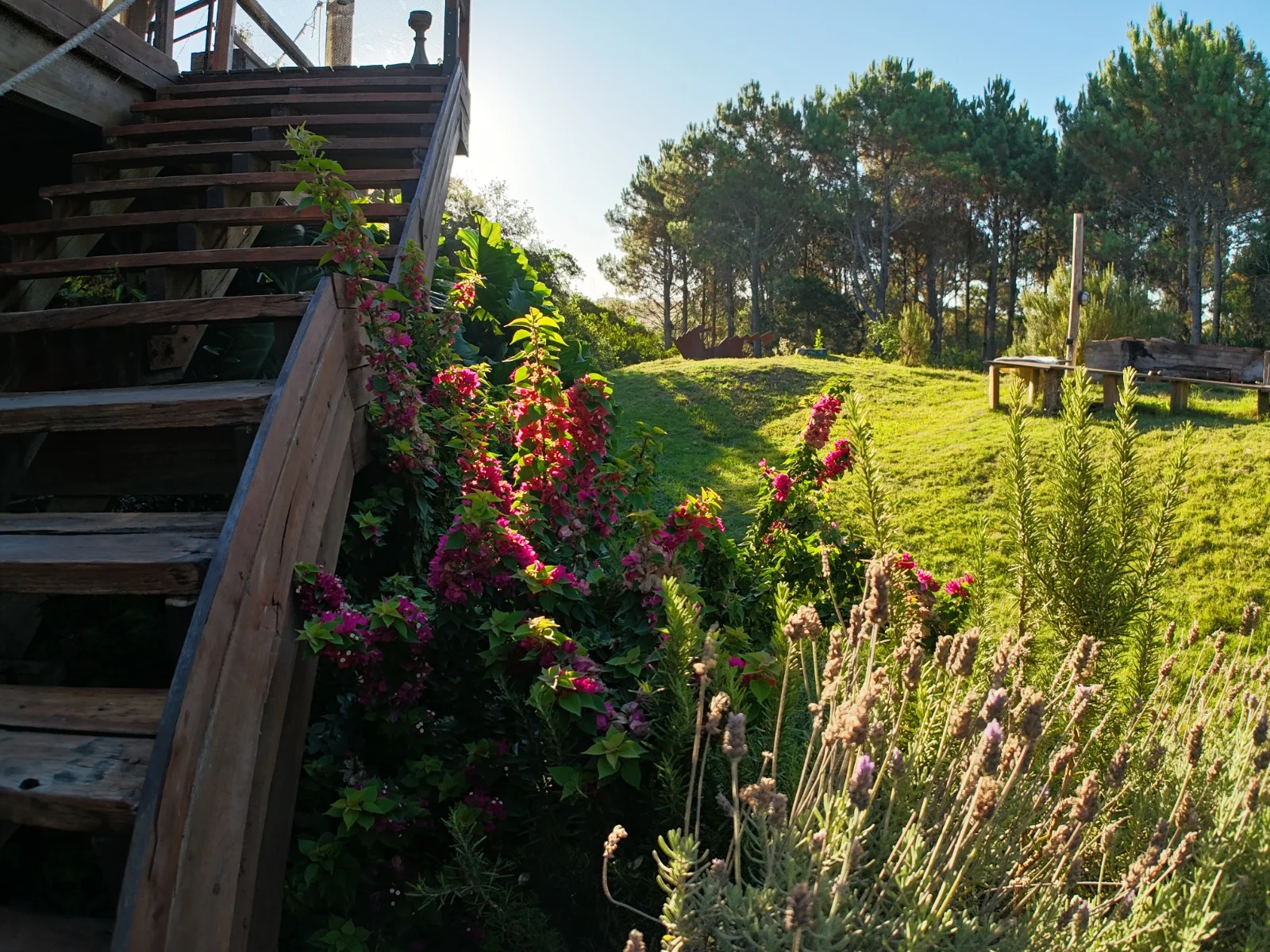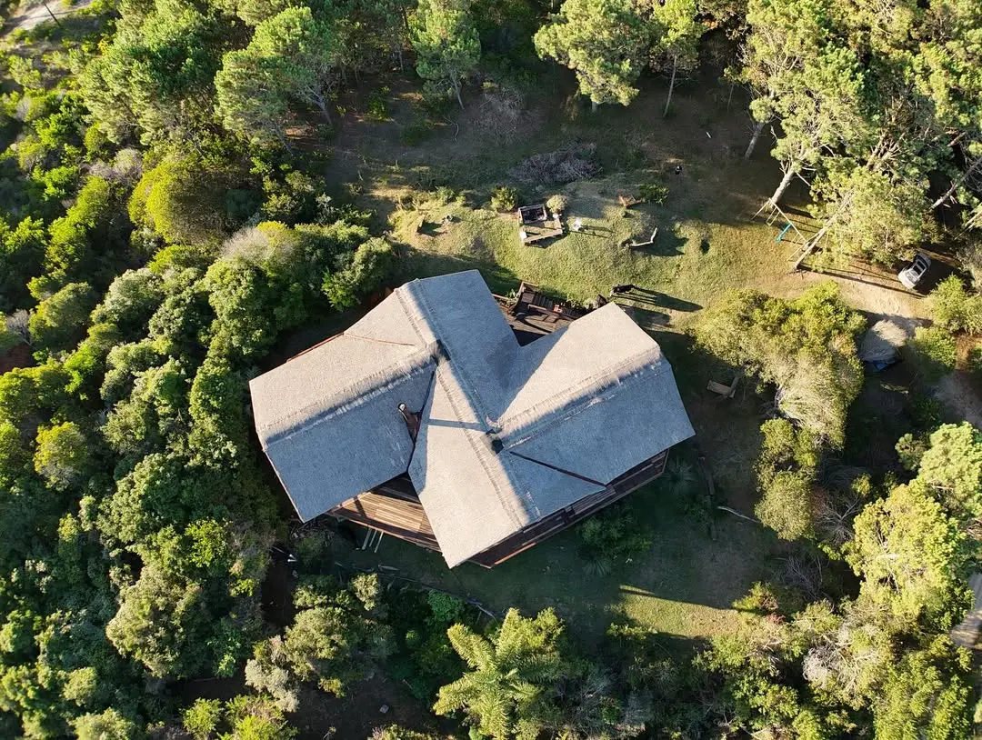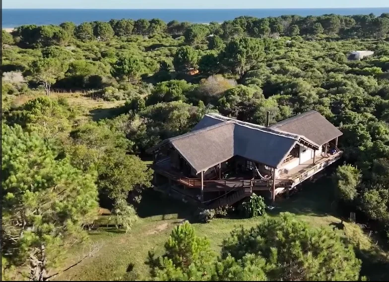 Con una superficie total de 516 m2, esta propiedad se distribuye en 216 m2 cubiertos en dos plantas y un impresionante deck de 300 m2 que abraza la planta alta y está emplazada en un terreno de 6.500 m2. Construcción estrictamente ecológica y natural: maderas nobles locales y sin tratar,, techo de quincha. Tiene vista al mar y vista al campo.