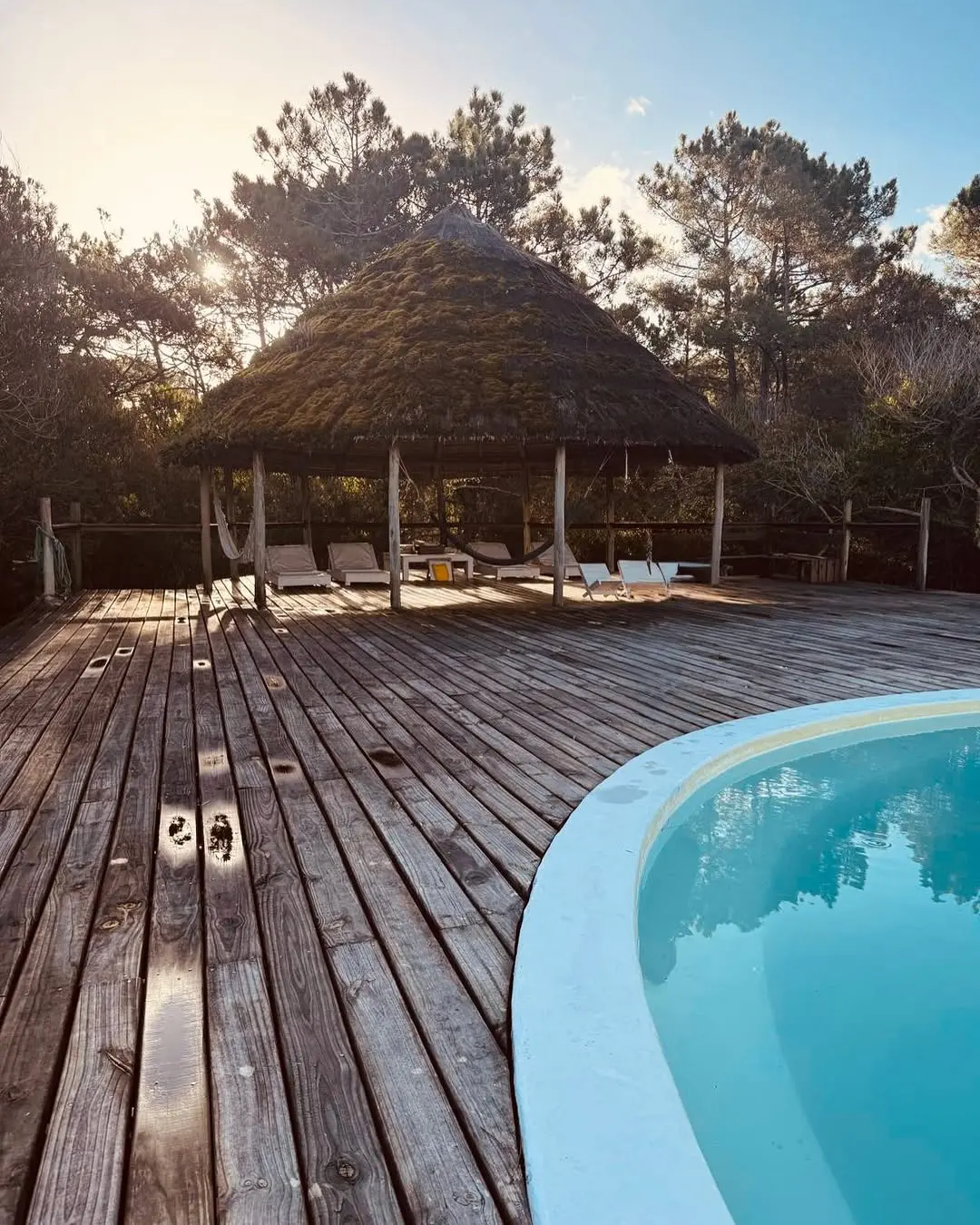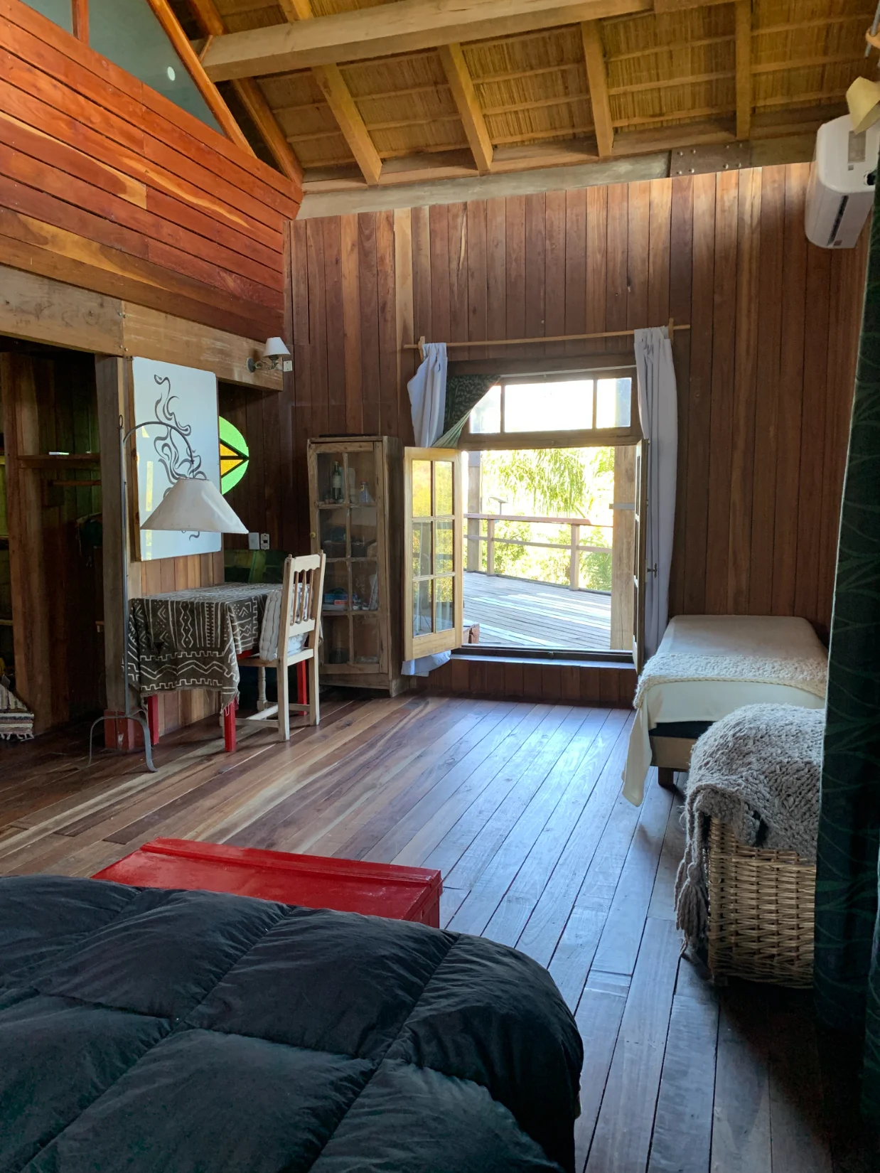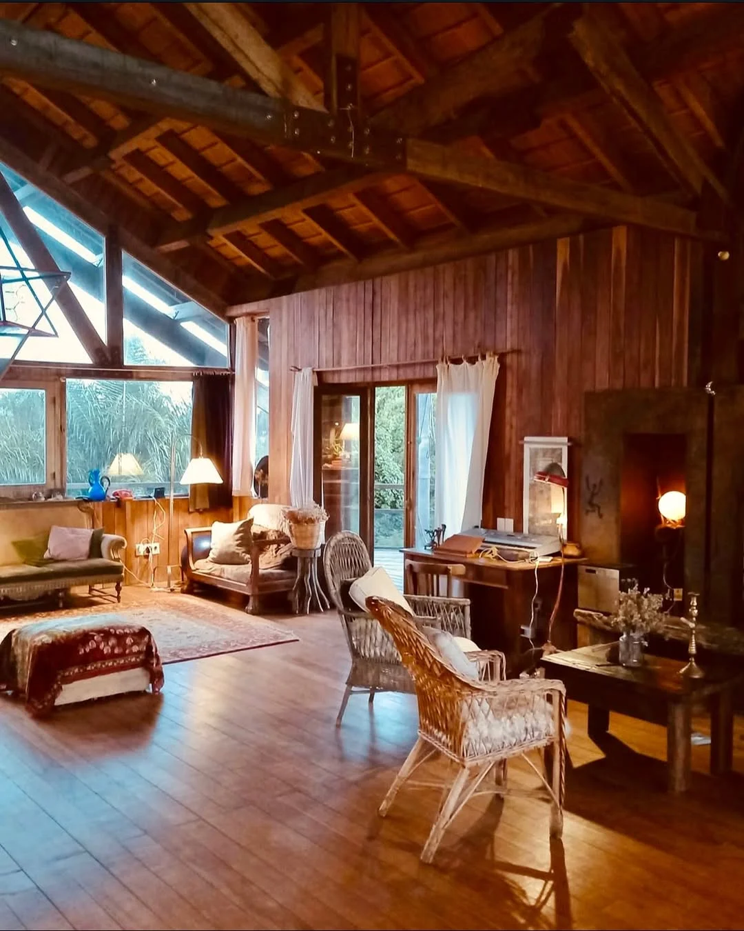 Con una superficie total de 516 m2, esta propiedad se distribuye en 216 m2 cubiertos en dos plantas y un impresionante deck de 300 m2 que abraza la planta alta y está emplazada en un terreno de 6.500 m2. Construcción estrictamente ecológica y natural: maderas nobles locales y sin tratar,, techo de quincha. Tiene vista al mar y vista al campo.