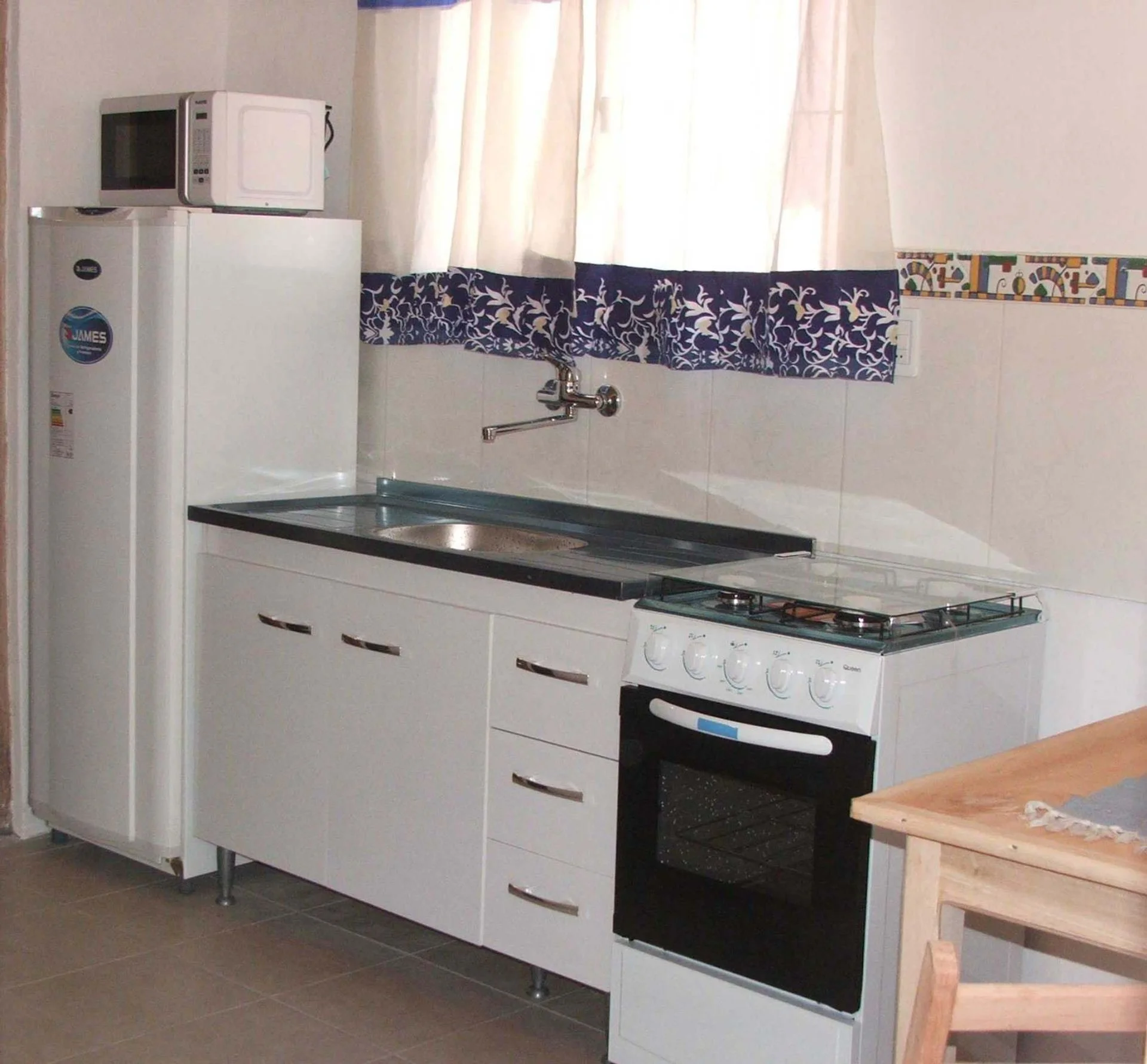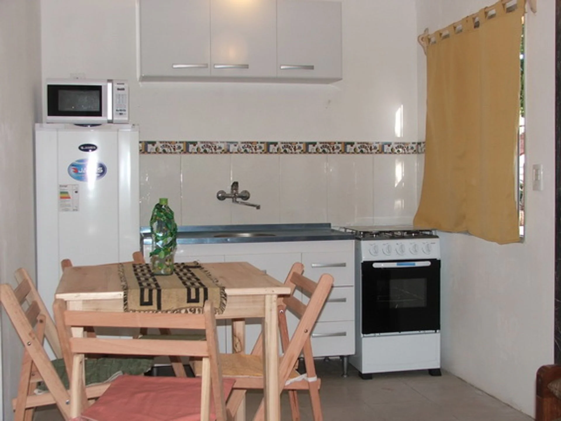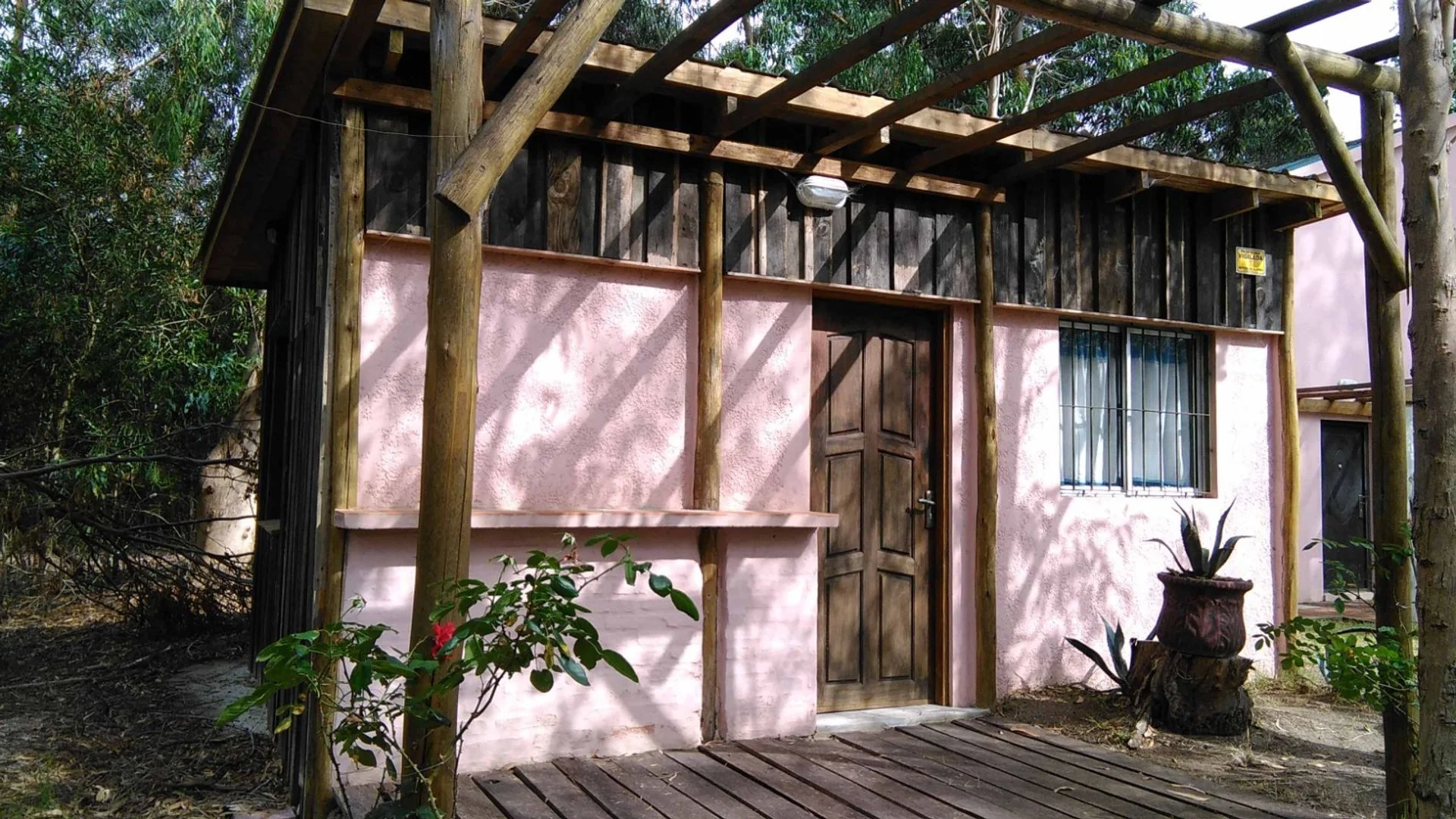 La cabaña monoambiente es para dos personas, más un menor, cama matrimonial y una cama de soltero, cocina americana, baño completo y pérgola afuera.