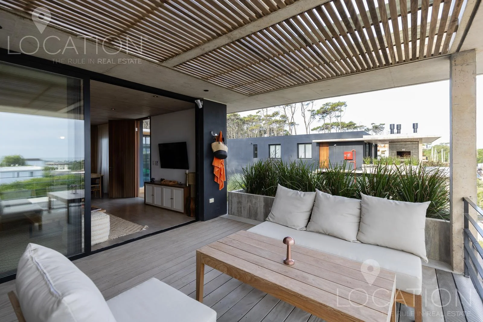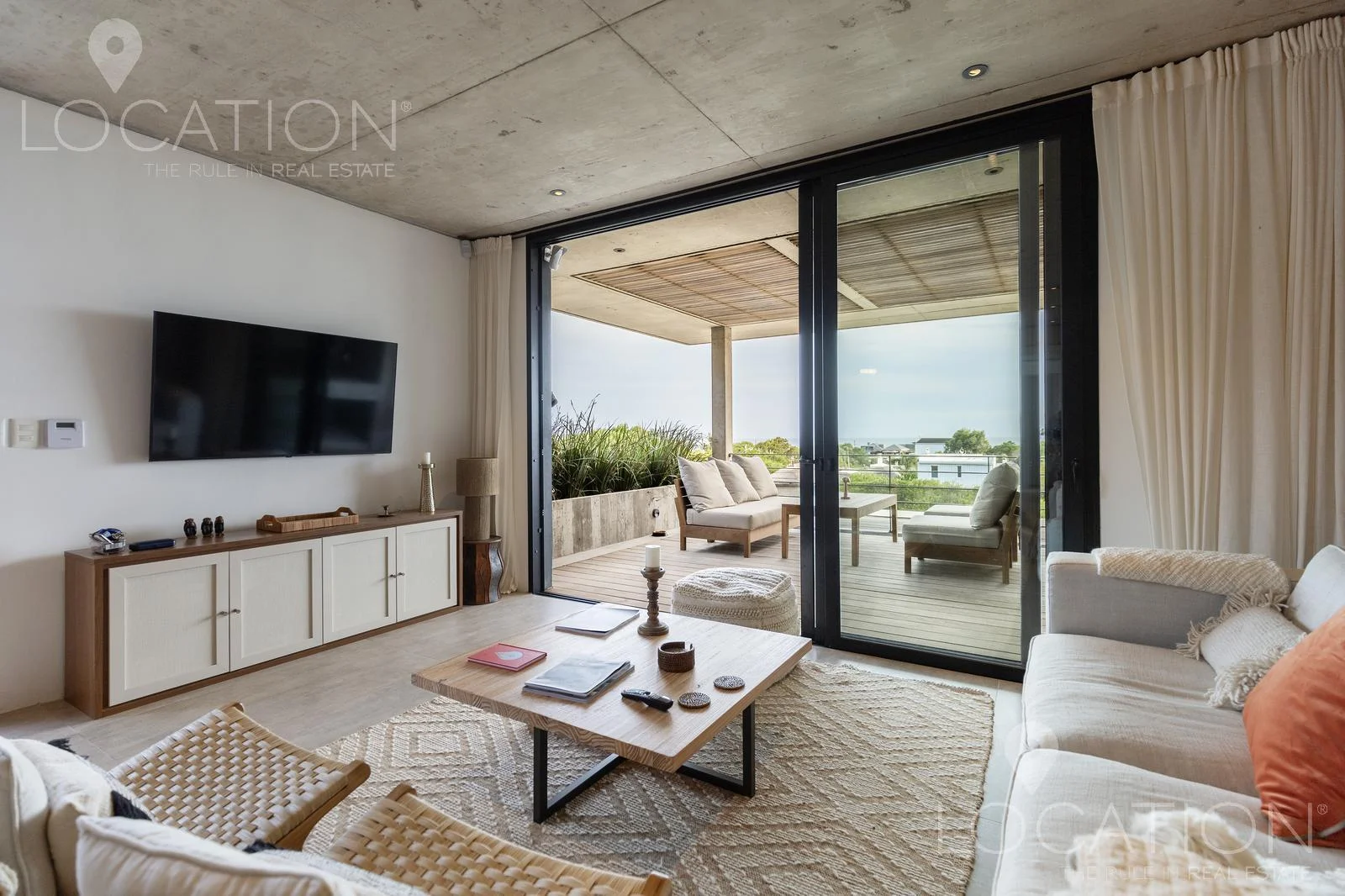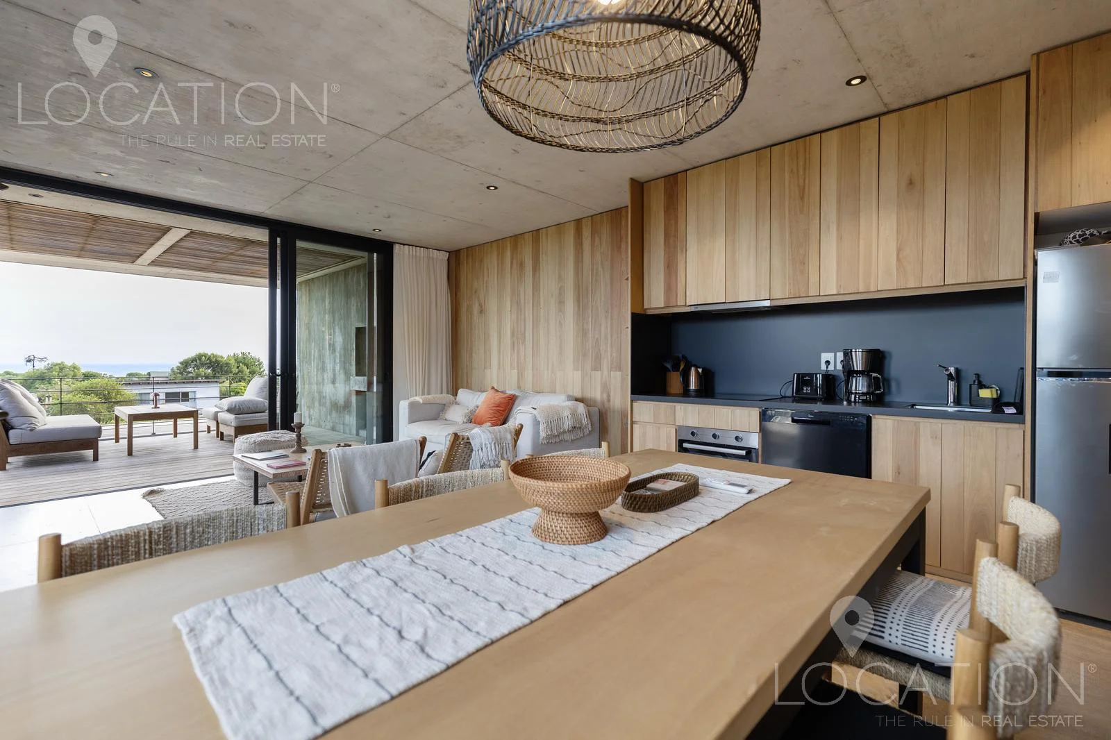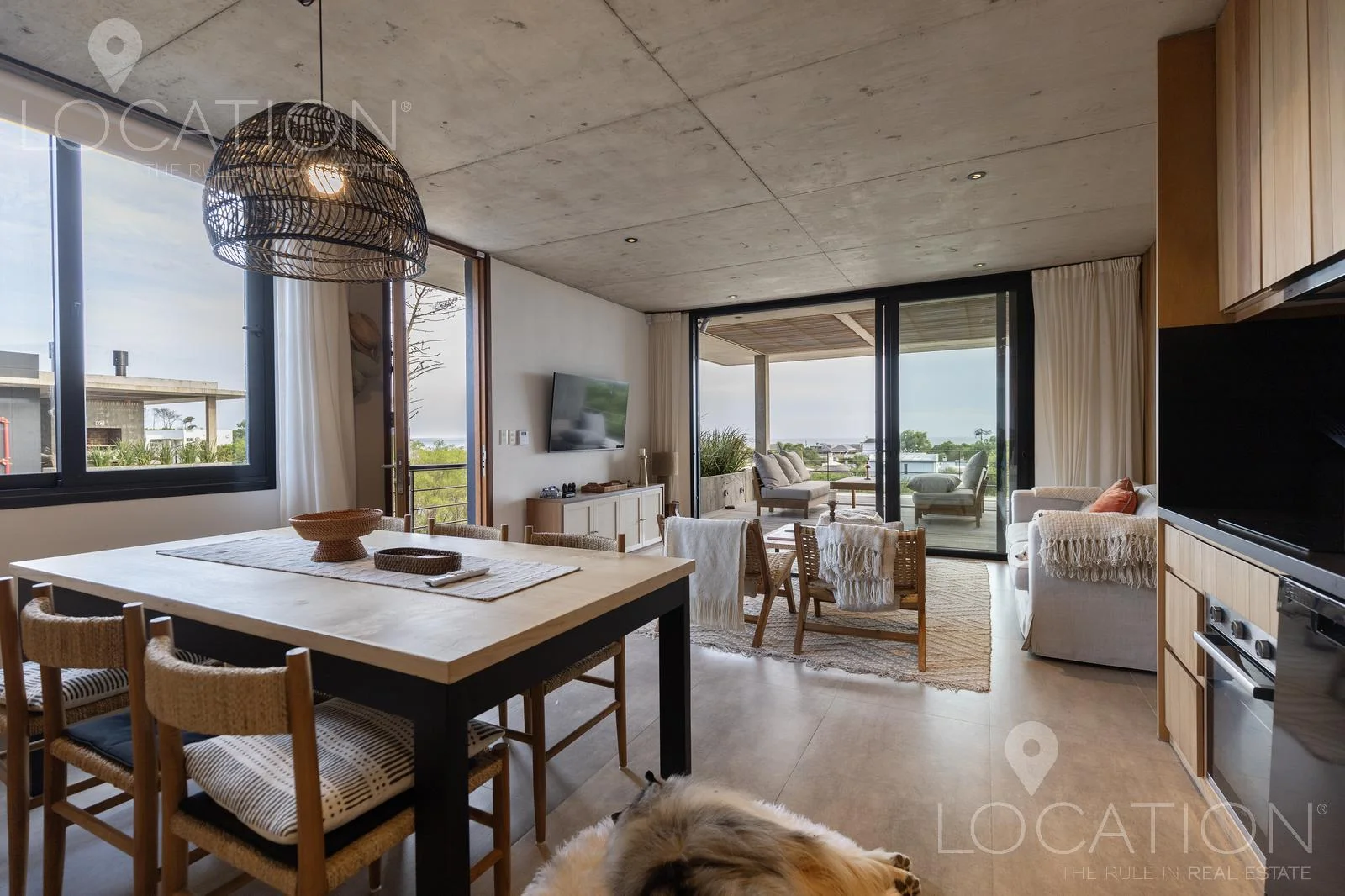 Fantastica planta en el nuevo proyecto exclusivo 'Alma Juana' diseño de la mano del famoso arquitecto Martín Gomez, ubicado en la mejor parte de La Juanita, vendemos este penthouse con gran terraza. Disfrute de su parilla con vista al mar y al pueblo de José Ignacio! Con una superficie total de 142 m² tiene: el apartamento cubierto con 76 m² que tiene 2 dormitorios (con placares) en suite más baño social, living-comedor, cocina estilo americano, al frente una primera terraza de 20 m² (incluido parrillero) vista mar y detrás otra terraza de 6 m² con acceso desde el dormitorio principal, aires split y estufa pellet. En el subsuelo se encuentran 2 cocheras y gran baulera/lavadero (total 40 m²). El complejo dispone de 2 edificios frente a la calle, cada uno con solo 4 apartamentos, y un edificio con 8 apartamentos al fondo del terreno, una gran piscina común y un lavadero compartido. Situada a 250 metros de la playa y a poca distancia de un supermercado, panadería y amplia selección de restaurantes gastronómicos.