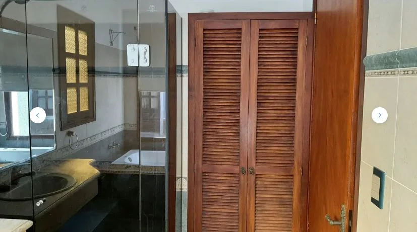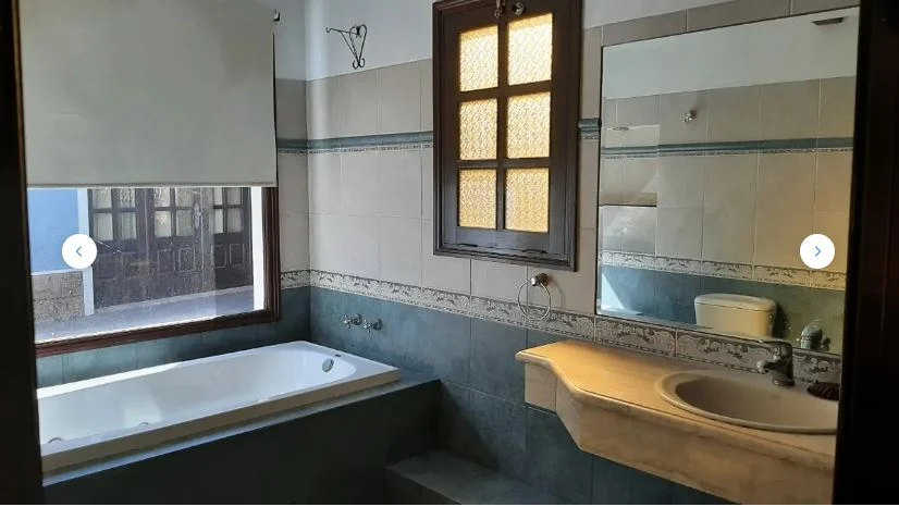 • Baño completo con hidromasaje, mesada de mármol travertino, ducha con vidrio blindex, placard y calefón de 80 litros.