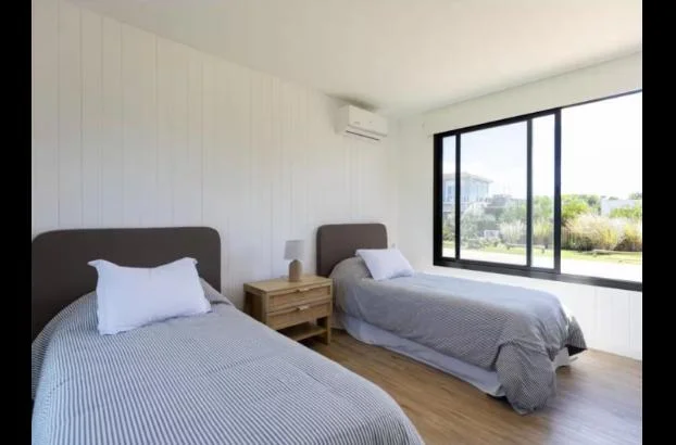 Upstairs, a second living area opens onto a terrace with stunning views of the ocean and José Ignacio Lagoon.
