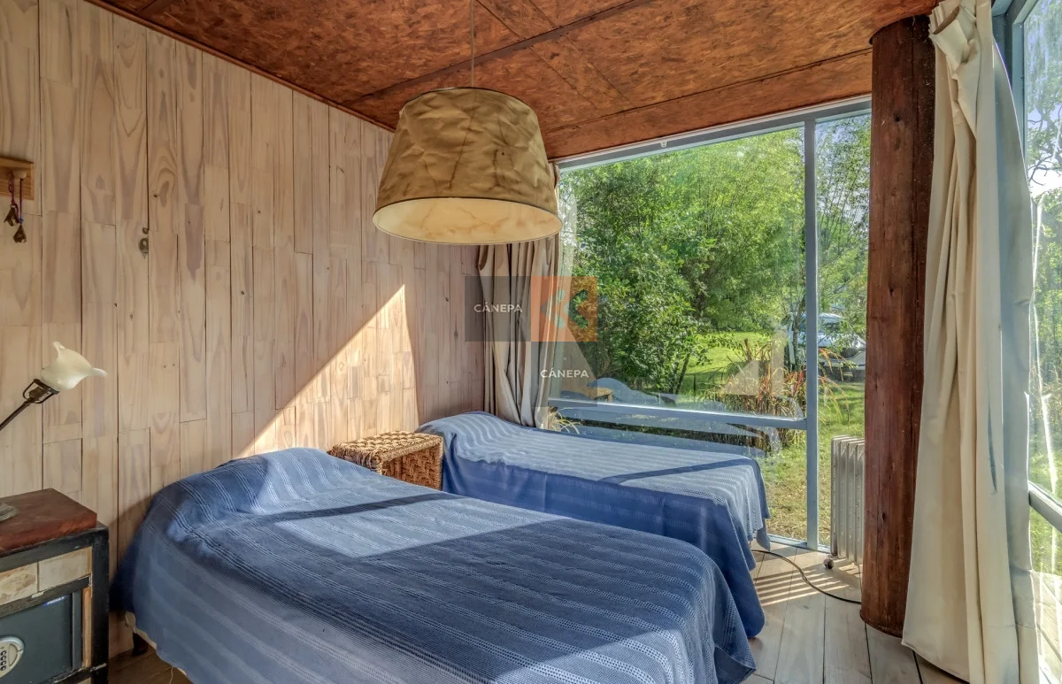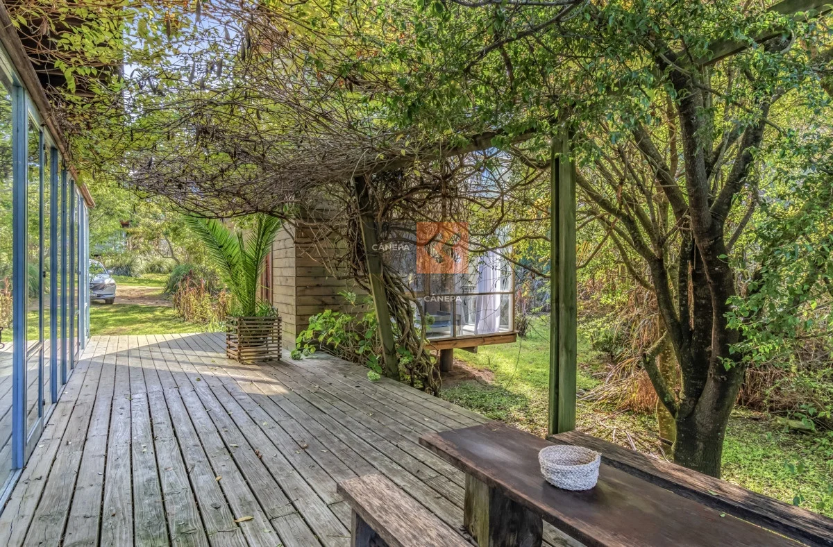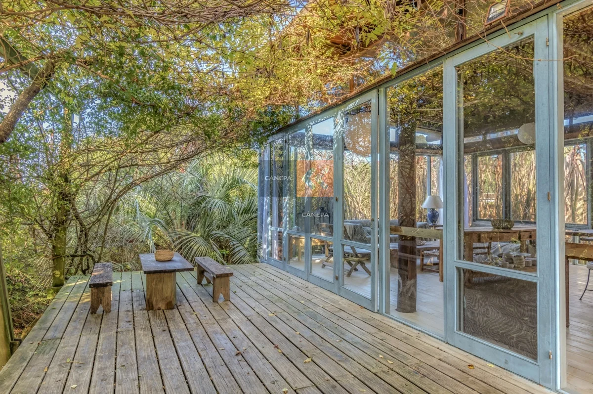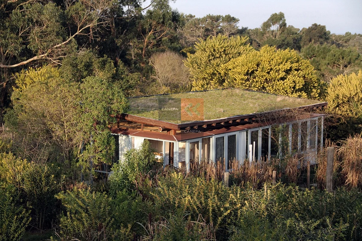 Casa de vidrio Elevada sobre el terreno, la casa vuela hacia el paisaje generando la sensación de estar viviendo dentro del bosque. Se trata de una vivienda principal con dos dormitorios y un baño y una ampliación anexa con un tercer dormitorio en planta alta y baño. Cuenta con living comedor y cocina integrada, con amplios ventanales con salida a un deck. Se construyeron en su totalidad con maderas forestales renovables (eucaliptos y pinos) y con un techo verde que resuelve la aislación térmica. Los lados de las casas son de vidrio con carpinterías de abrir y mosquiteros que permiten el acondicionamiento mediante un sistema de ventilación cruzada. Referencia Interna : Tera-15091