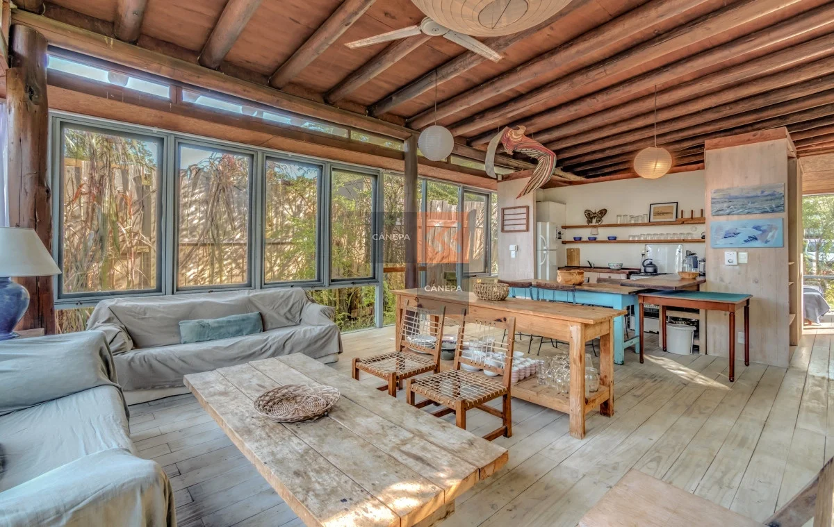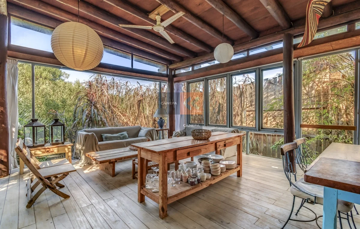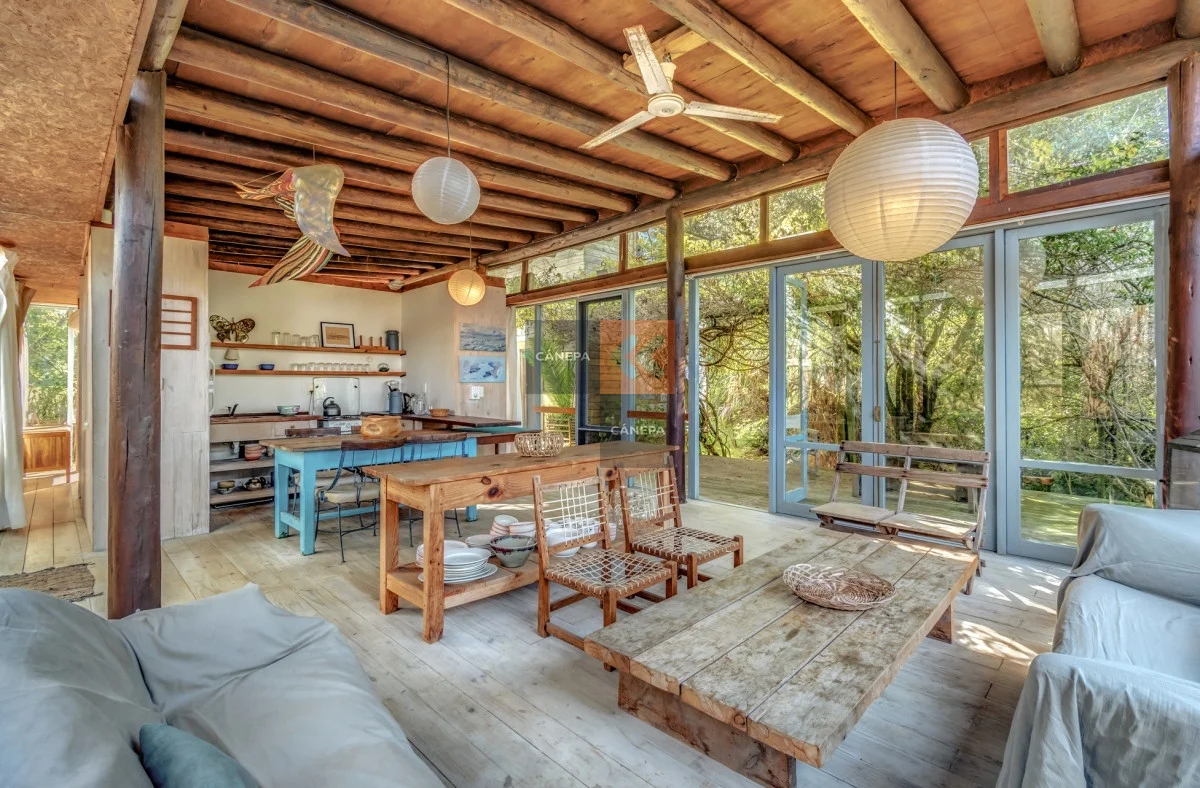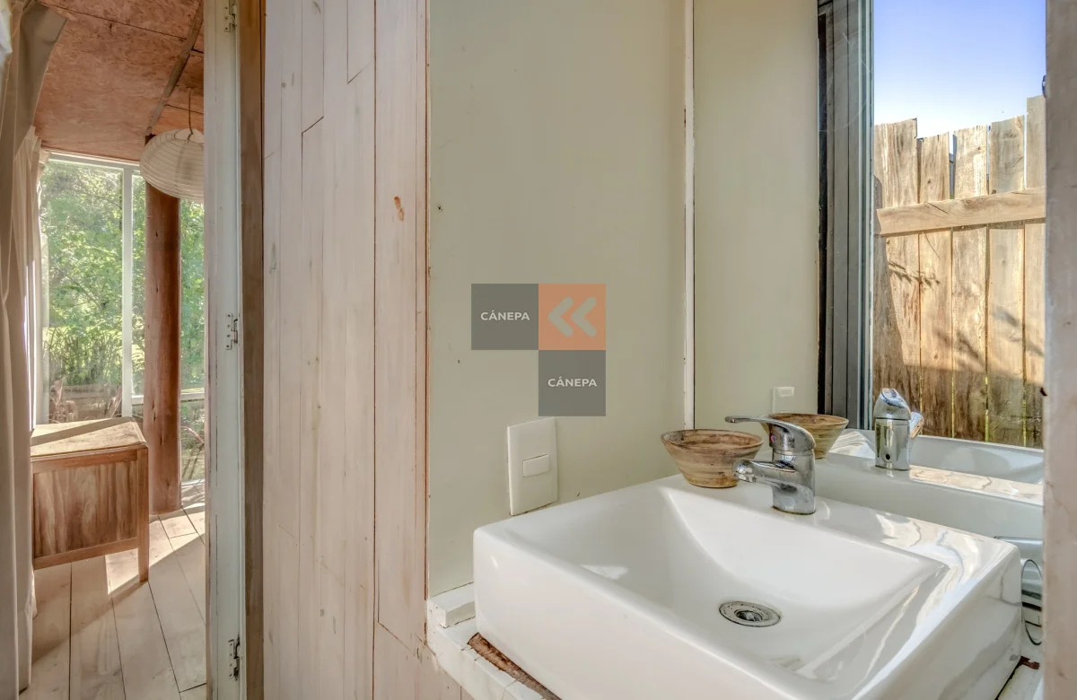 Casa de vidrio Elevada sobre el terreno, la casa vuela hacia el paisaje generando la sensación de estar viviendo dentro del bosque. Se trata de una vivienda principal con dos dormitorios y un baño y una ampliación anexa con un tercer dormitorio en planta alta y baño. Cuenta con living comedor y cocina integrada, con amplios ventanales con salida a un deck. Se construyeron en su totalidad con maderas forestales renovables (eucaliptos y pinos) y con un techo verde que resuelve la aislación térmica. Los lados de las casas son de vidrio con carpinterías de abrir y mosquiteros que permiten el acondicionamiento mediante un sistema de ventilación cruzada. Referencia Interna : Tera-15091