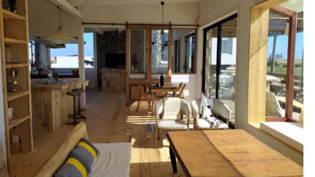 EN ALQUILER CASA CON GRAN VISTA AL MAR!Ubicada en La Juanita en primera linea a la laguna Jose Ignacio.. Construida en dos plantas, de madera y concreto.La casa cuenta con tres dormitorios internos y dos extras externos. Lavadero y parrillero.Cinco dormitorios en total y cinco baños.