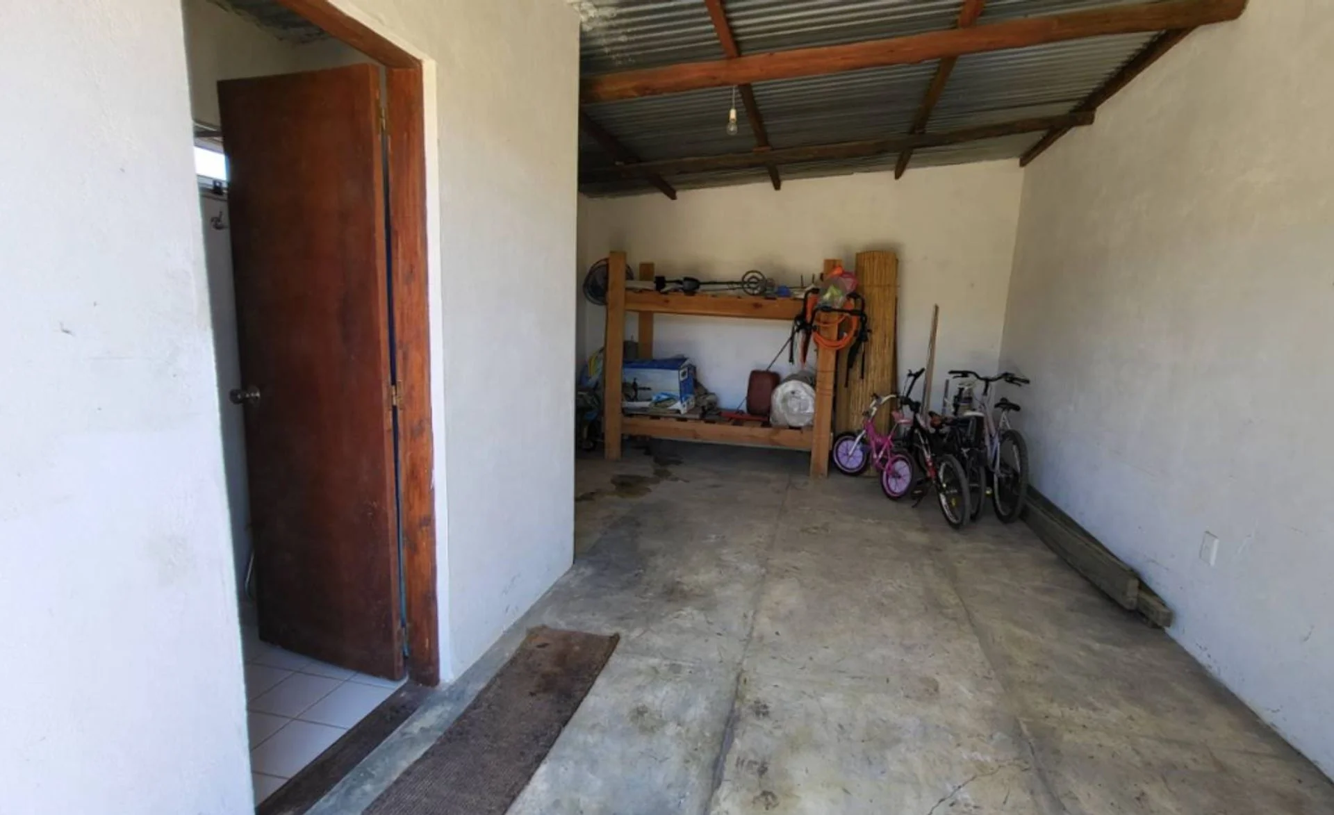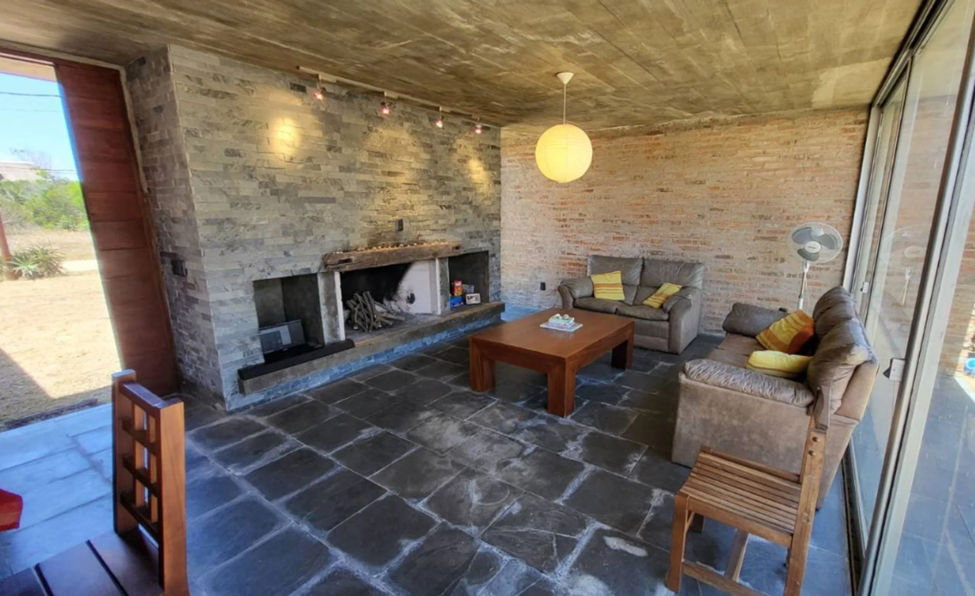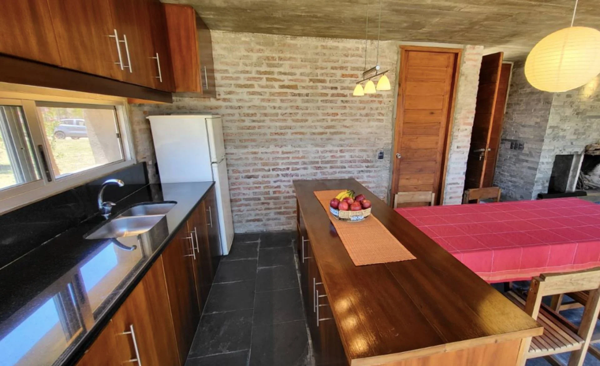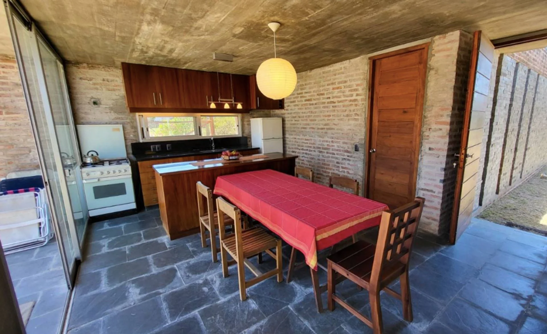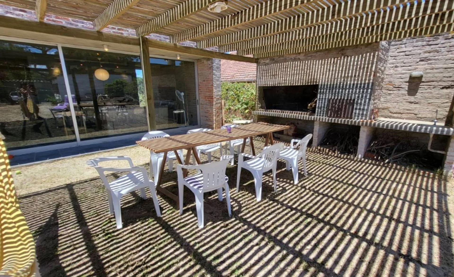 La distribución interior comprende living con hogar, cocina comedor integrada, dos dormitorios y baño completo. En el exterior dispone de área de parrillero con pérgola y garage con baño completo, aportando funcionalidad tanto para uso permanente como estacional.