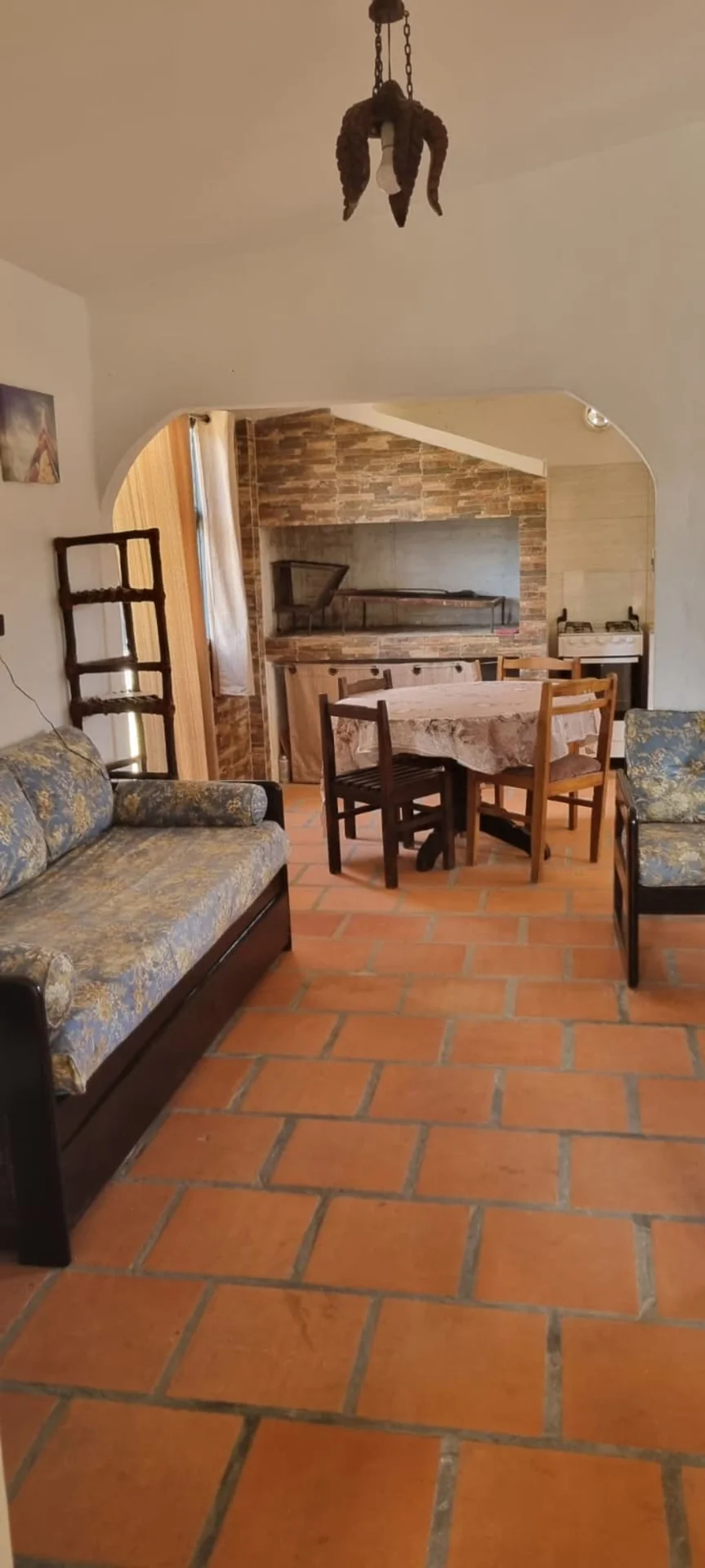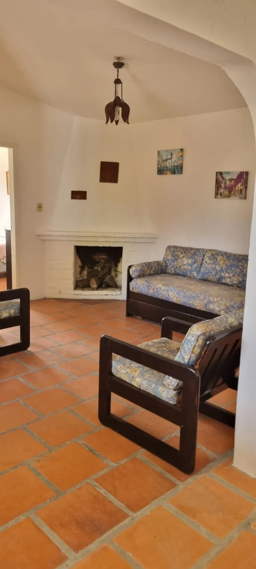 La casa consta de dos dormitorios, un baño con calefón, un living-comedor amplio con estufa a leña y una cocina integrada donde hay también un parrillero de importantes dimensiones. Toda la vivienda tiene pisos de cerámica y ventanas con rejas.