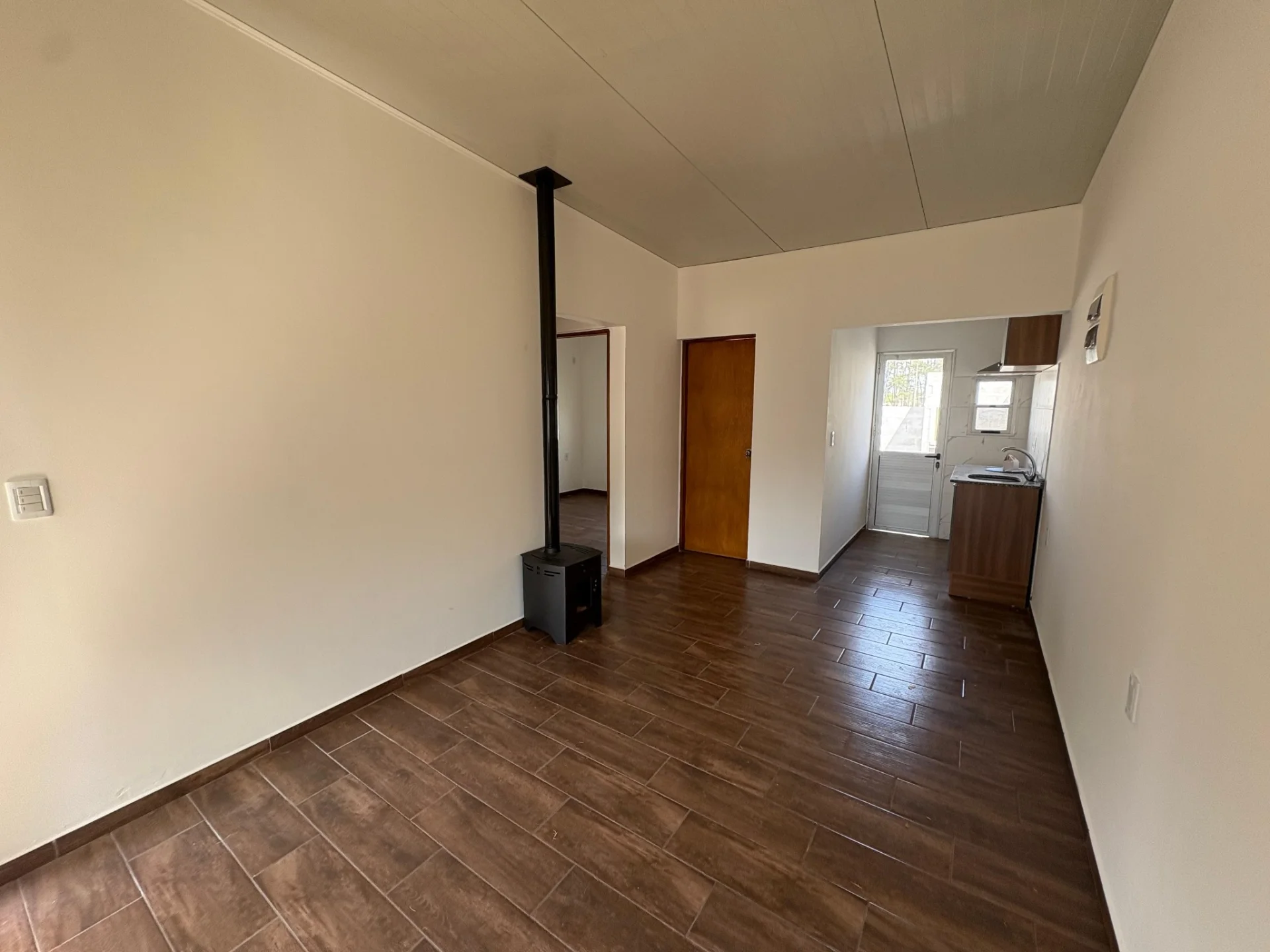 CASA A ESTRENAR AL FONDO DE 2 DORMITORIOS, 1 BAÑO, INGRESO INDEPENDIENTE VEHICULAR , PREDIO CERCADO, PARRILLERO AL FONDO . CON ESTUFA DE ALTO RENDIMIENTO