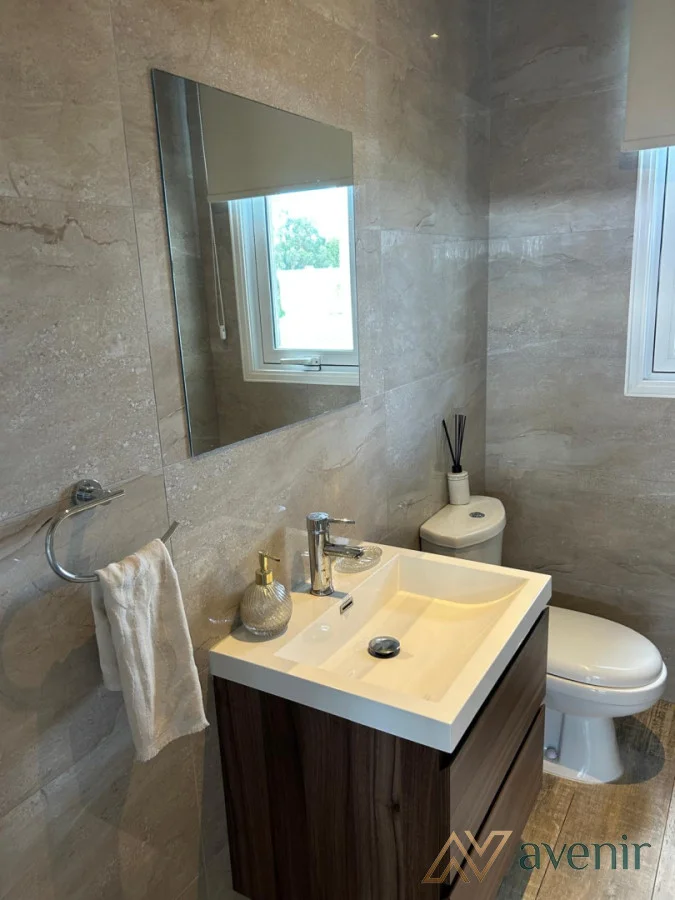 En el ala derecha se ubica la zona privada: dos dormitorios que comparten un baño completo y una suite principal con vestidor y baño en suite.