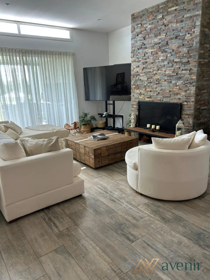 - Calefacción por losa radiante eléctrica sectorizada, estufa a leña y aires acondicionados en todos los ambientes.