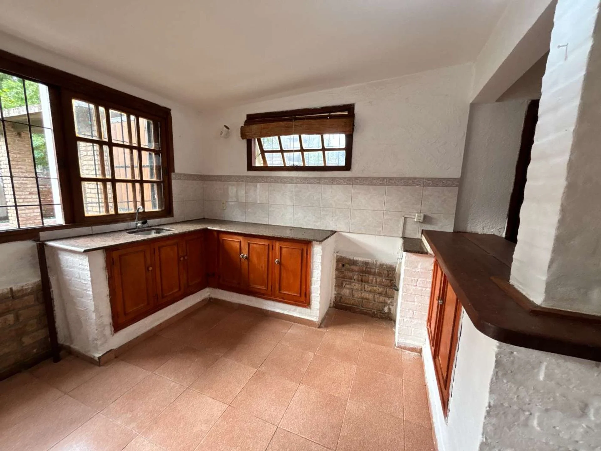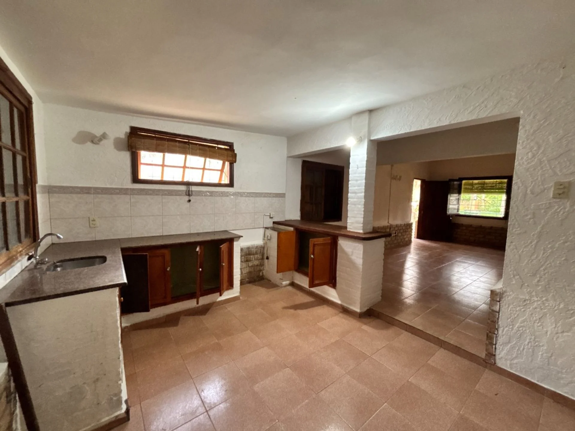Hacia el fondo se ubica la cocina integrada, funcional y luminosa, con salida al exterior, donde se encuentra un parrillero techado y sector de lavadero.