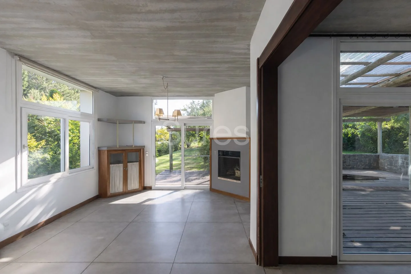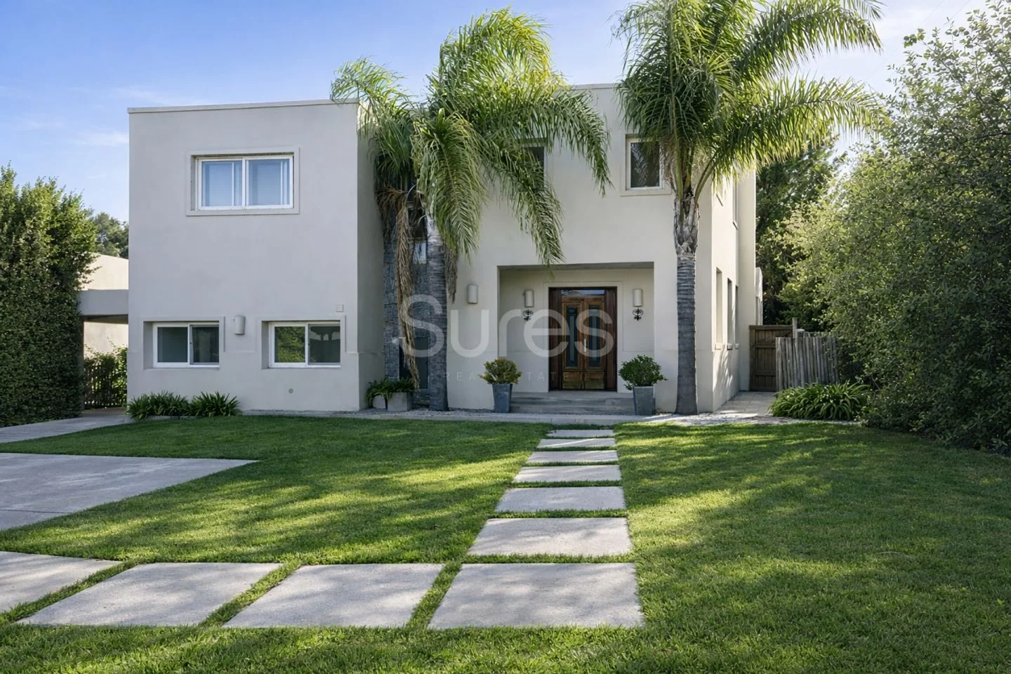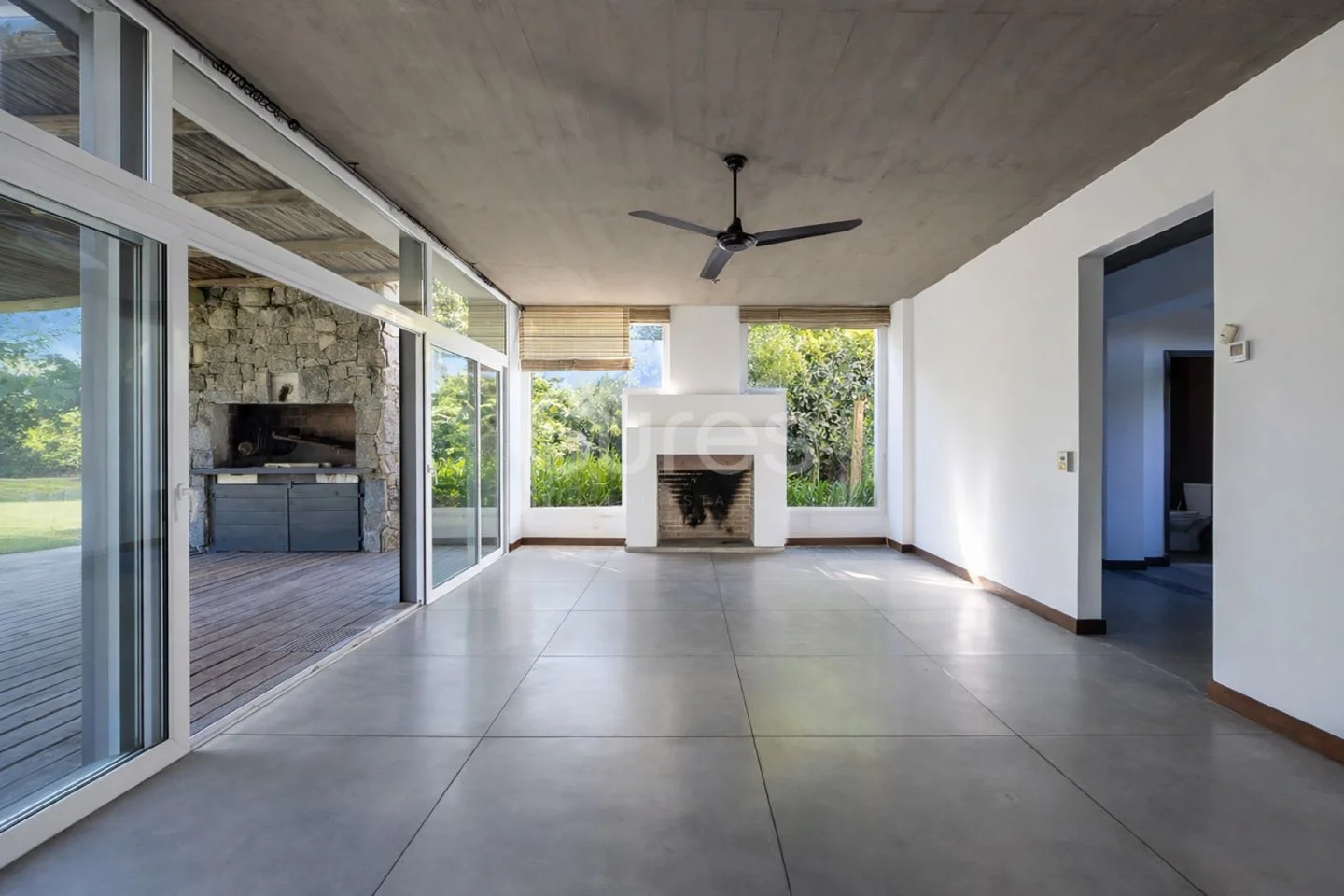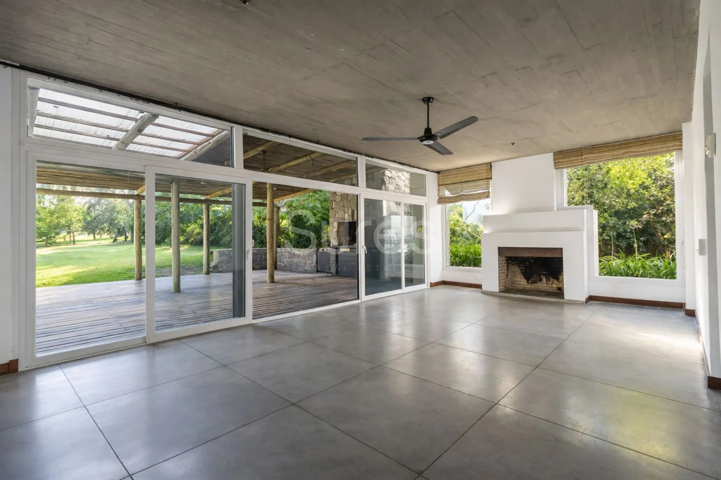 Al ingresar, la casa recibe con un hall de entrada que conecta con el living comedor con estufa a leña, generando un espacio central cómodo para el día a día y también para reuniones. En planta baja cuenta además con toilette, comedor con ventanales de piso a techo, y un estar con salida directa a la galería. La cocina con office ofrece buen funcionamiento diario y se complementa con despensa y lavadero. En este nivel también se ubican el dormitorio de servicio y su baño.