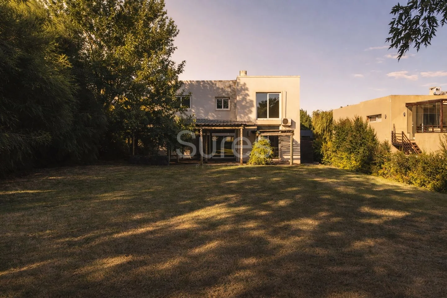 Entre sus comodidades, la casa cuenta con galería con parrillero, aire acondicionado en los principales ambientes, vidrios DVH en toda la casa y losa radiante eléctrica, aportando confort durante todo el año. Además, dispone de garaje cubierto para un auto. En seguridad, se destaca por estar dentro de barrio privado y por contar con alarma, sumando respaldo tanto en el entorno como en la propia propiedad.