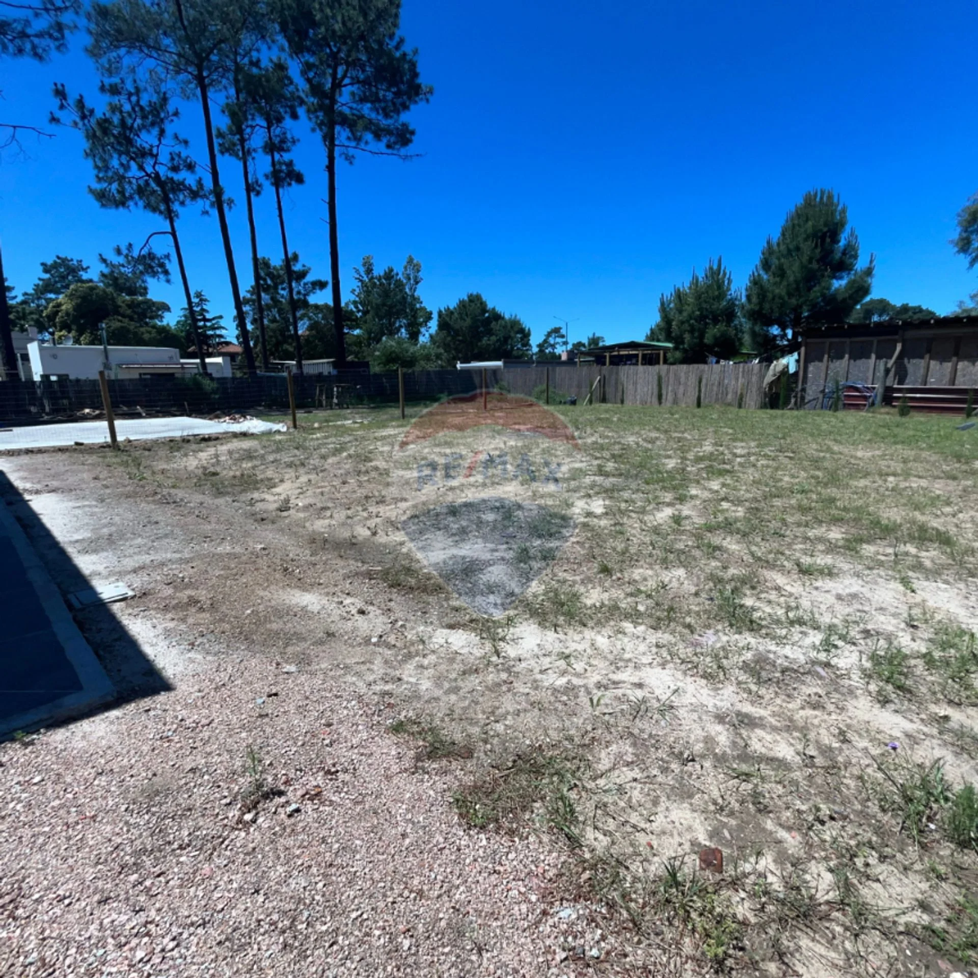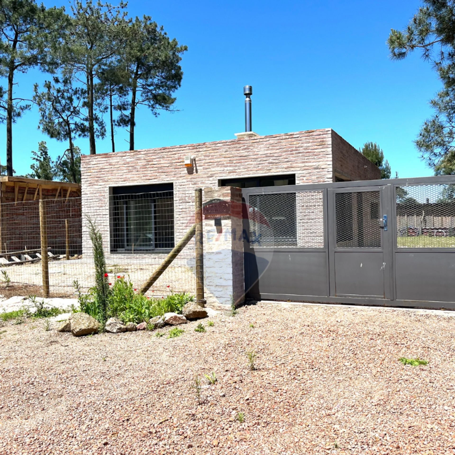Cerramiento en todo el perímetro con tejido y entrada para varios coches con portón de hierro automatizado.