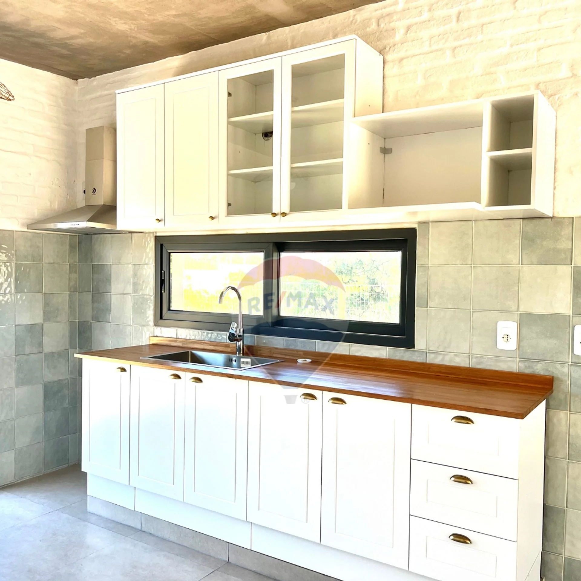 Cocina con placares sobre y bajo mesada integrada al living. La misma cuenta con campana extractora.