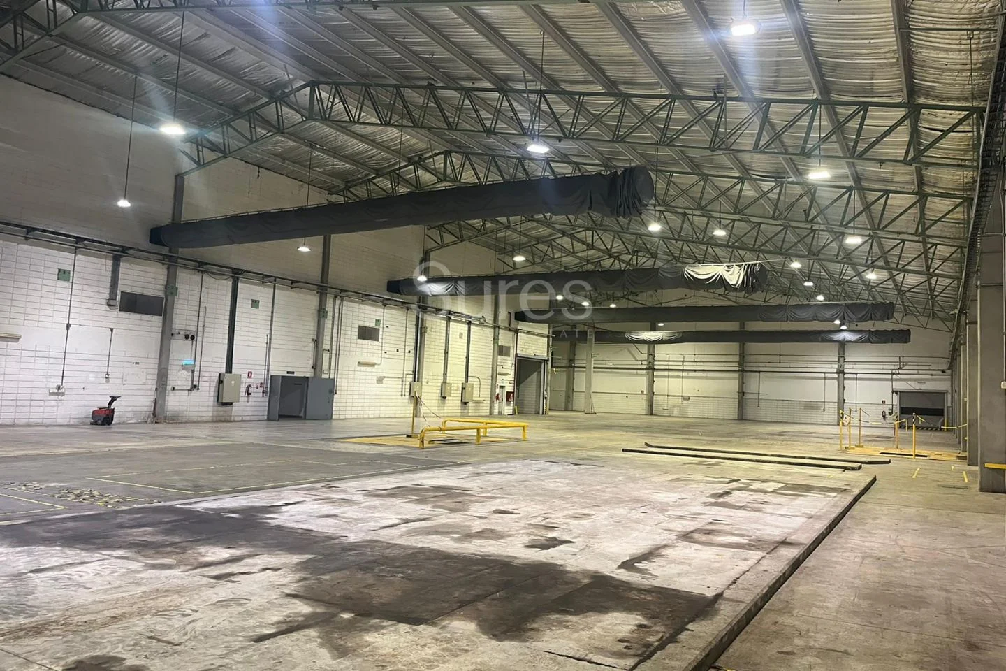 Planta libre de 2.500m2 de altura libre mínima de 12 m. Temperatura controlada entre 15 a 25 grados. Capacidad de hasta 1.400 posiciones. Todo aislado y con entradas para camiones y plaza de maniobras.