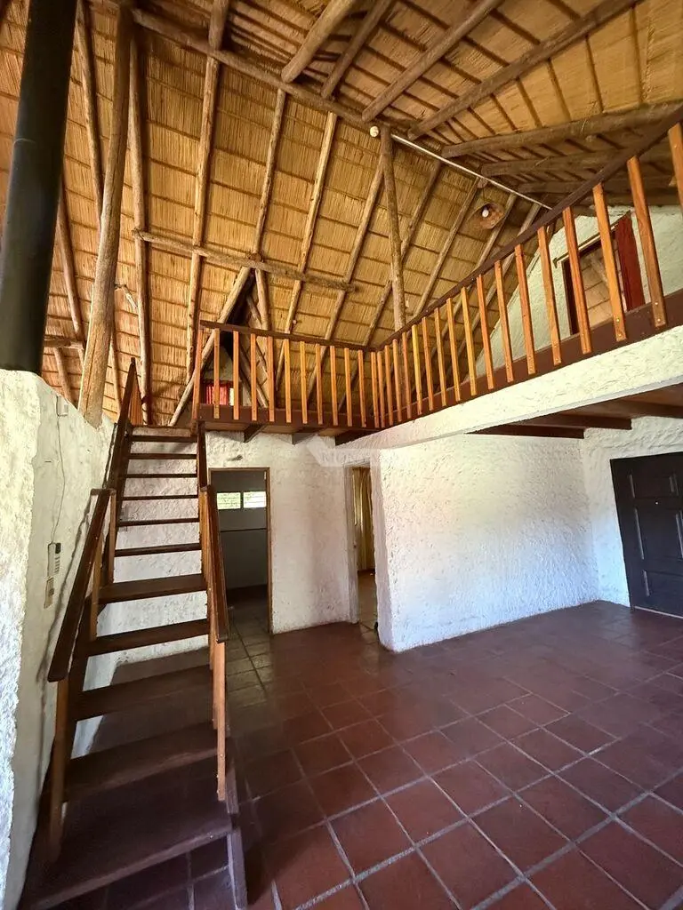 LAS BRUJAS .... LO QUE ESTABA BUSCANDO....VIVA LEJOS DEL STRESS Y CERCA DE TODO!! Casa de campo IMPECABLE... UNICA EN SU GENERO!!.. CHALET CON TECHO DE QUINCHO.... 134M EDIFICADOS EN 2 PLANTAS. A TAN SOLO 38 Km de la Plaza Libertad......A 2 km del Río Santa LucÍa, playa, pesca y monte indigena. Sobre camino vecinal. CHALET CON GRAN PRESENCIA....Parque arbolado al frente. DECK TECHADO AL FRENTE Y LATERAL con vista hermosa despejada. PLANTA BAJA: Living comedor con grandes ventanales y vista apaisada y con ESTUFA A LEÑA de alto rendimiento, 1 DORMITORIO, 1 baño completo, cocina con comedor diario CON SALIDA A GALERIA TECHADA.... PLANTA ALTA: ENORME AMBIENTE que se puede dividir en 2 DORMITORIOS.... GRAN FONDO CON PARRILLERO TOTALMENTE CERCADO CON MONTE NATIVO...NO HAY NADA IGUAL!!