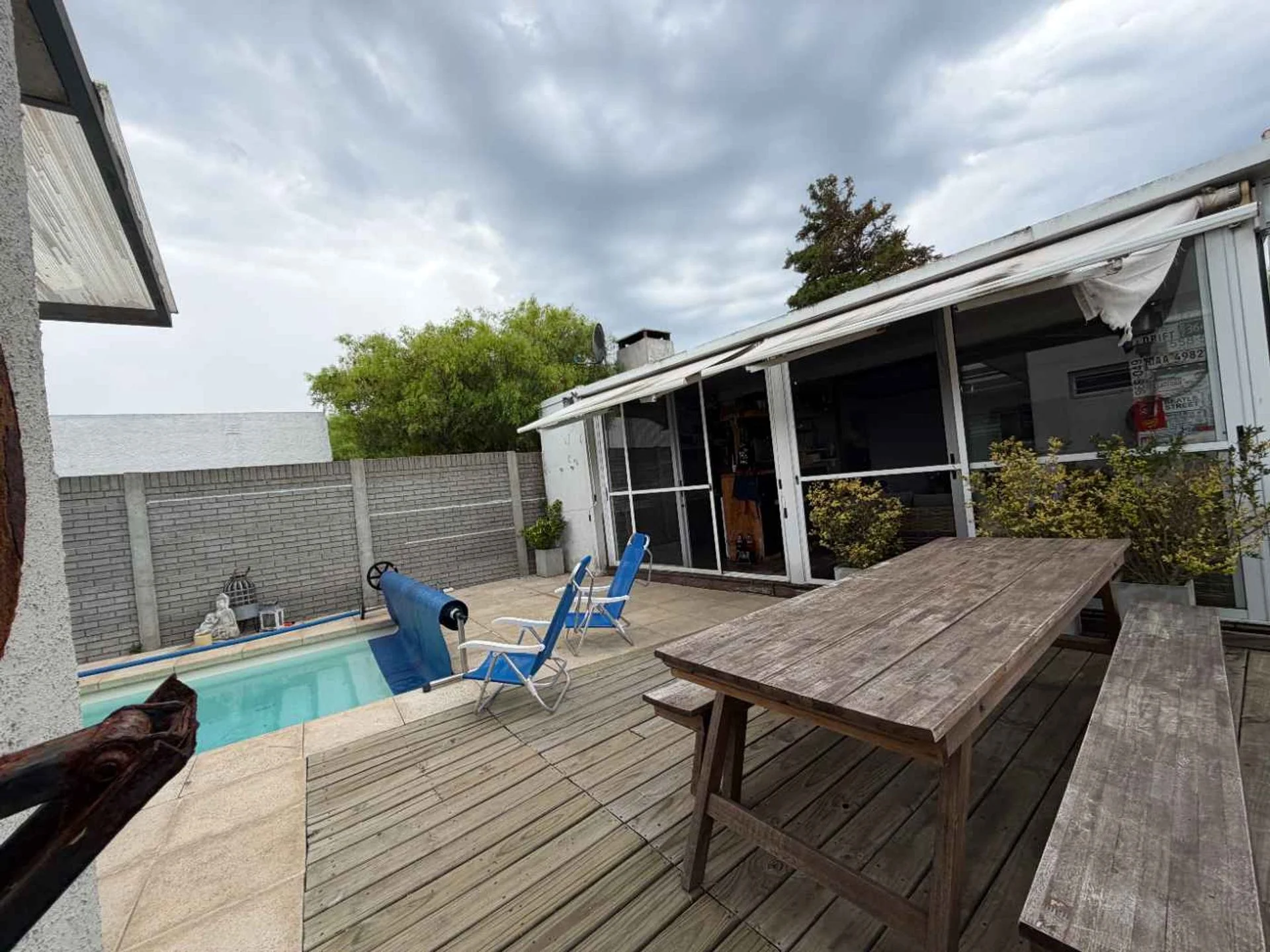 Características exteriores destacables incluyen cochera, jardín, patio, barbacoa cerrada con parrilla, horno de barro, baño completo, living y pileta, permitiendo múltiples opciones de esparcimiento y reunión. Disposición frontal que maximiza la luminosidad y privacidad del inmueble.