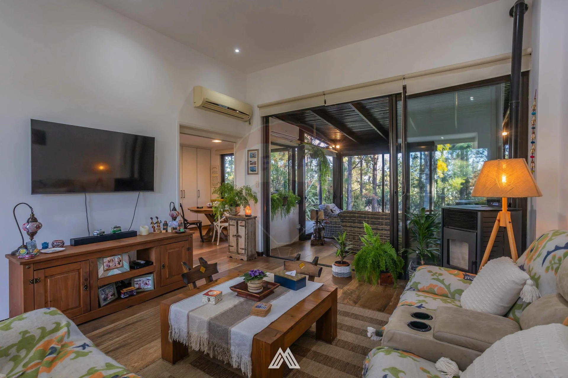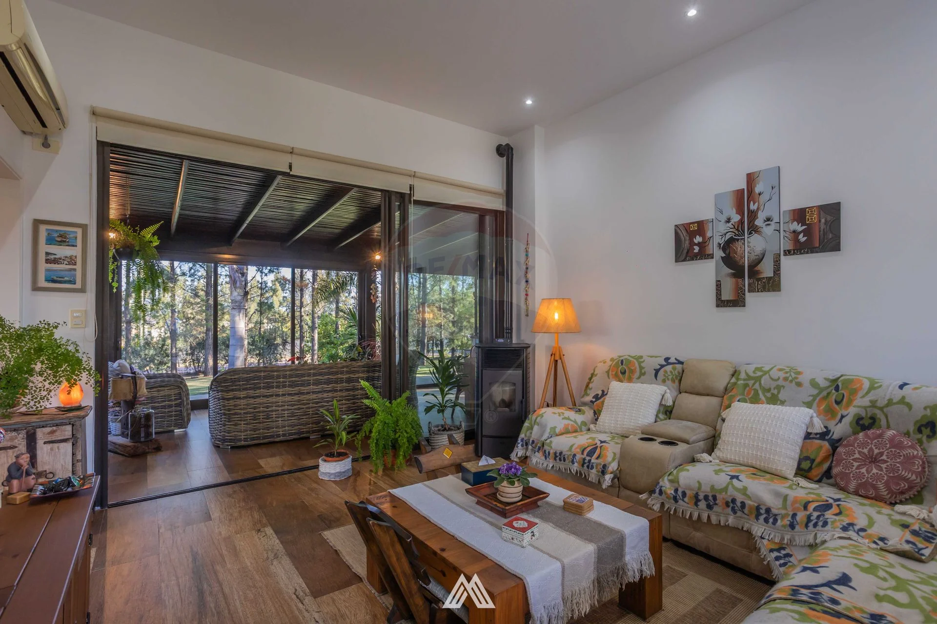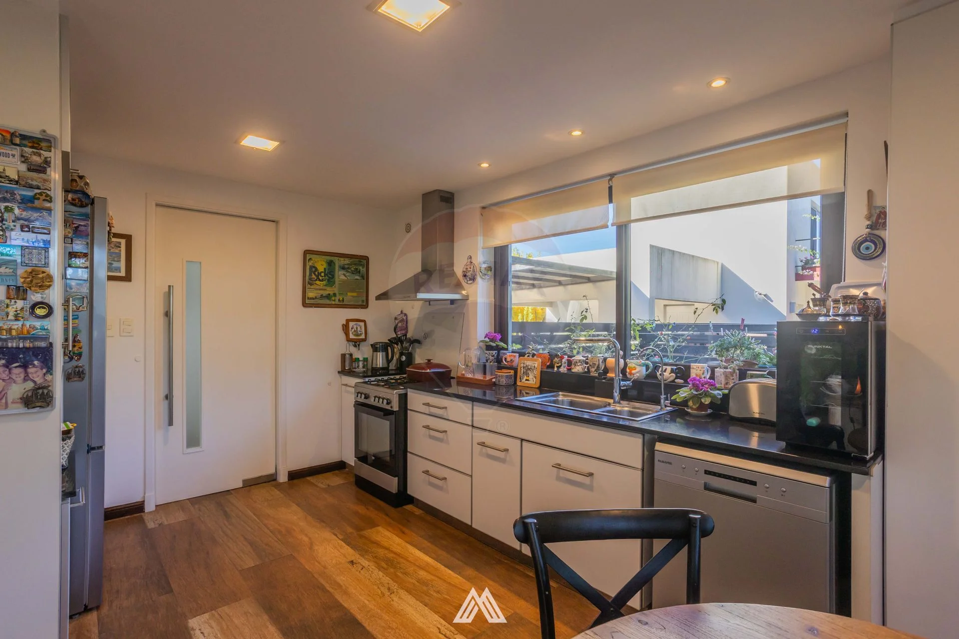 Cuenta con living integrado a una amplia barbacoa, separada por grandes ventanales y una cómoda cocina comedor, generando un espacio cálido y funcional para el día a día.