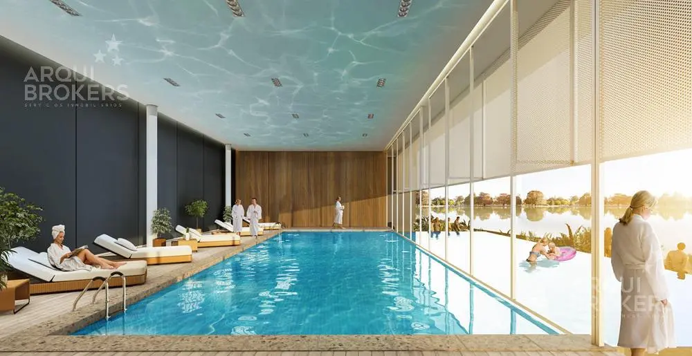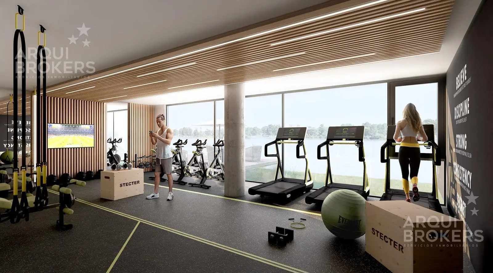 El edificio cuenta con con barbacoas con living, cowork, gimnasio, playroom, piscina interioy y exterior climatizada, solárium, losa radiante, seguridad, laundry, estación eléctrica, bicicletero, muelle privado y kayaks.