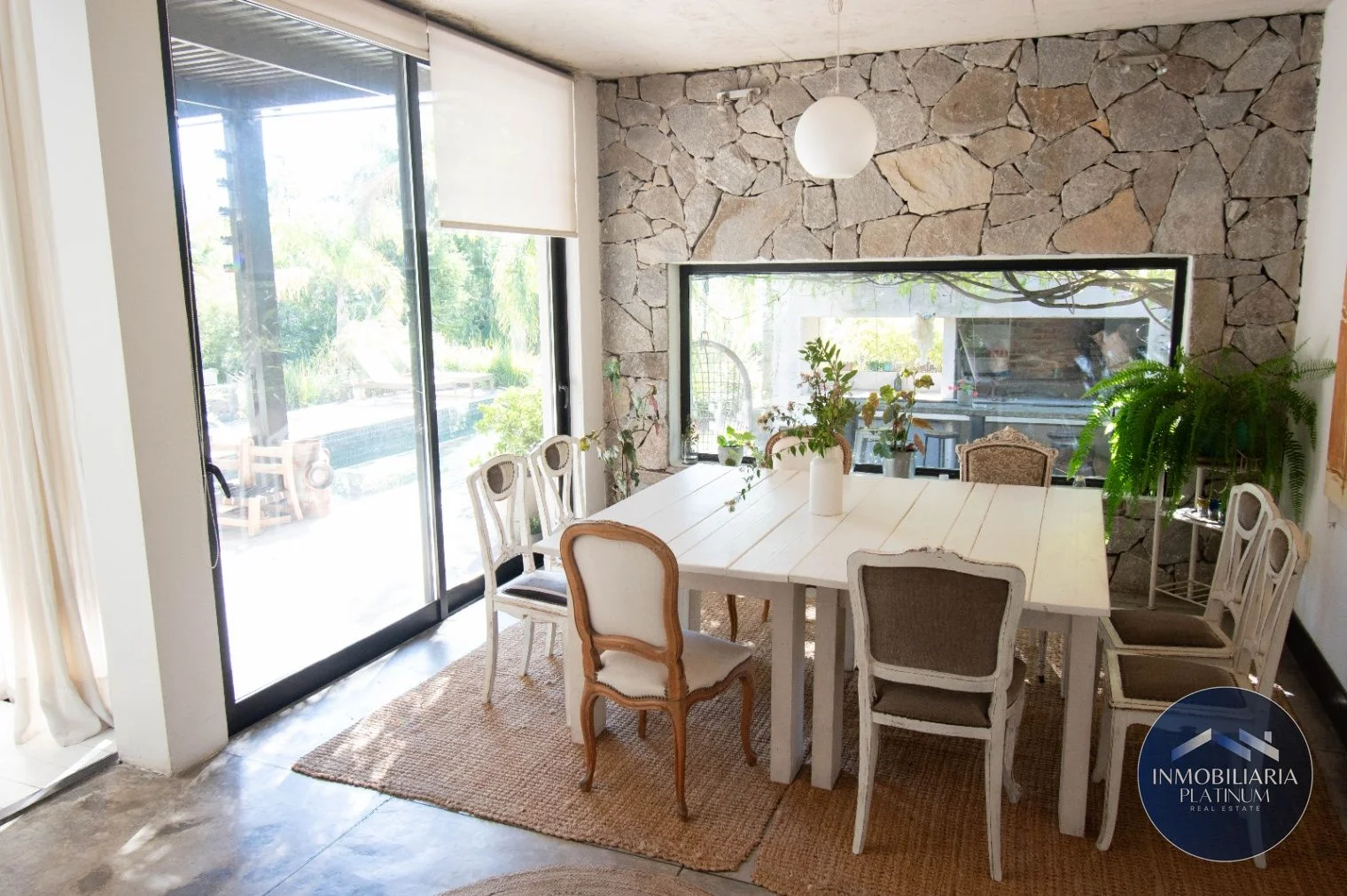 La casa cuenta con grandes ventanales, techos altos y mucha claridad y luz solar.