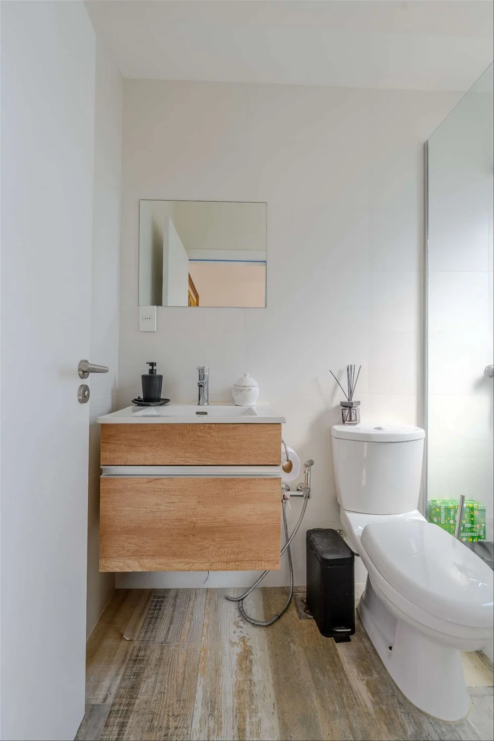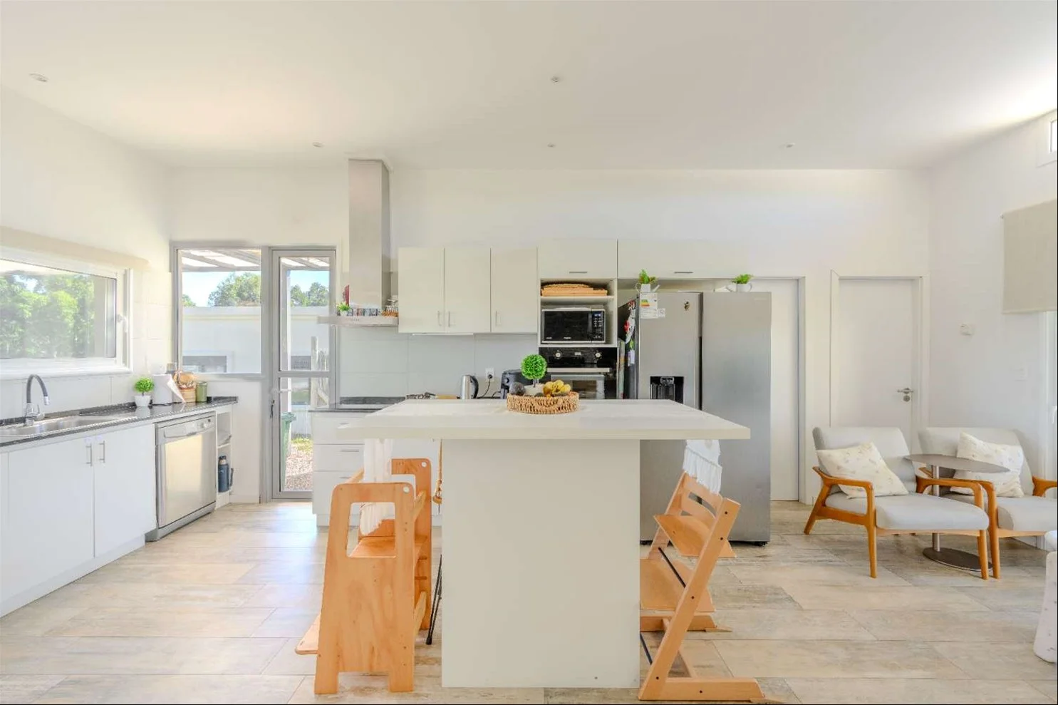 Cocina: Funcional, integrada y con puerta corrediza para mayor privacidad.