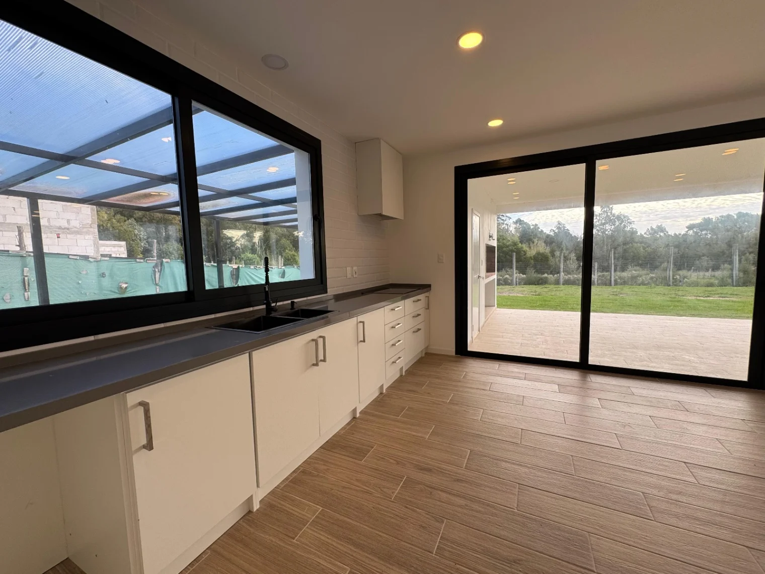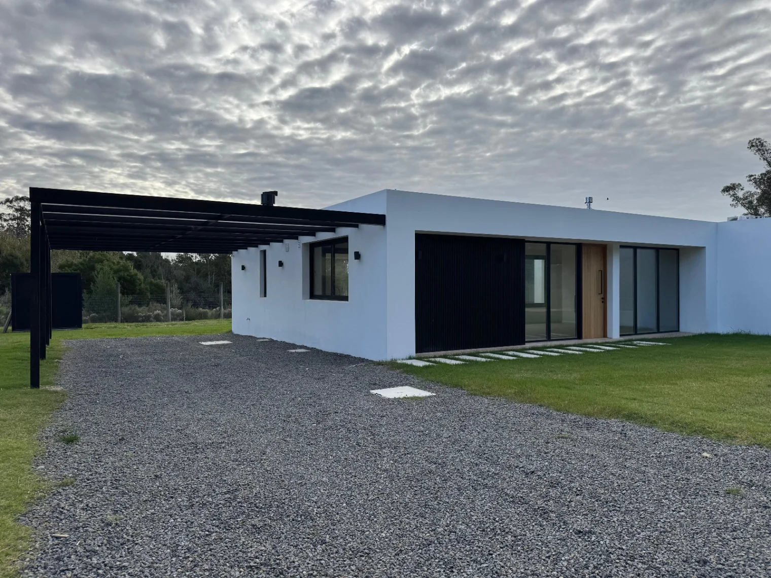 Moderna y funcional casa a estrenar ubicada en el exclusivo barrio privado de Cumbres de Carrasco, Canelones. Esta propiedad, con un precio de U$D 430.000, ofrece una superficie total de 130 m² de vivienda y 100 m² de barbacoa (cerrada opcional) y cochera cubierta con policarbonato.