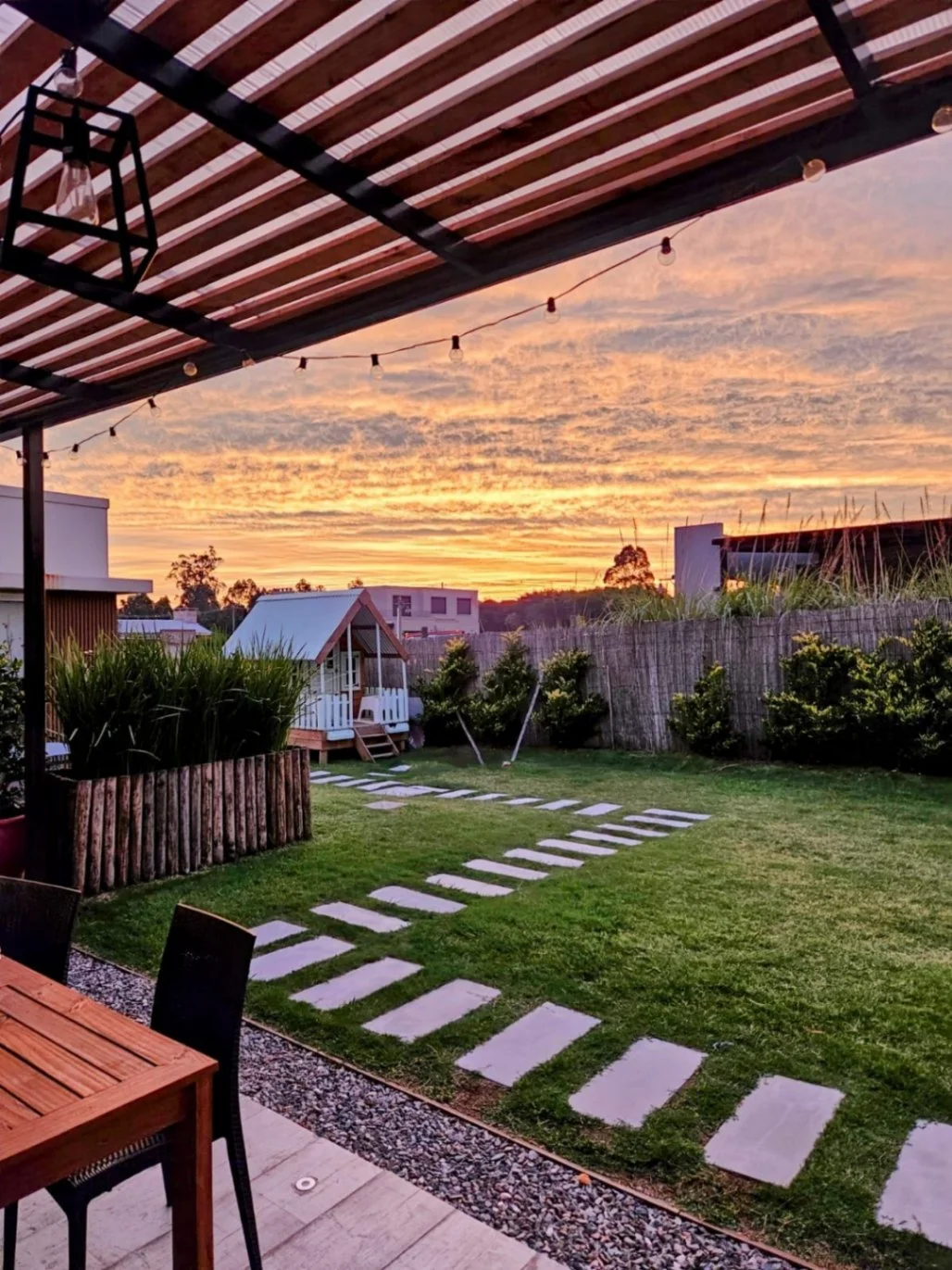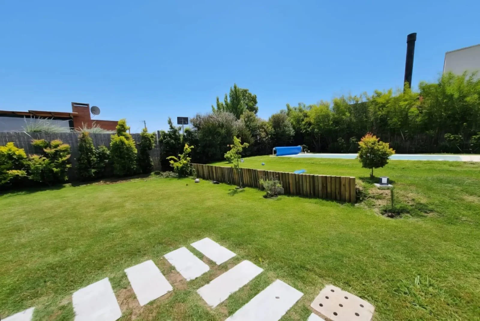 Los jardines integran interior y exterior, y se destacan por una hermosa piscina climatizada de 7 x 3.5 m, acompañada de áreas recreativas con hamacas, mesa de ping pong, aro de básquet y una amplia casita de juegos.