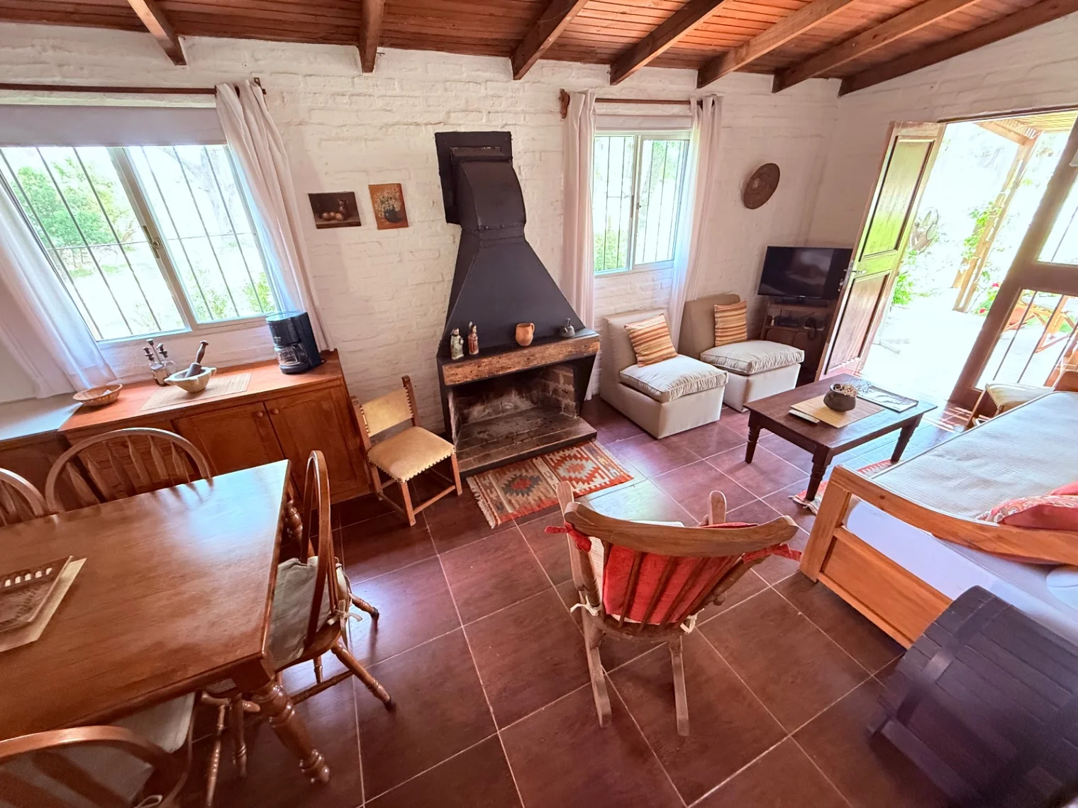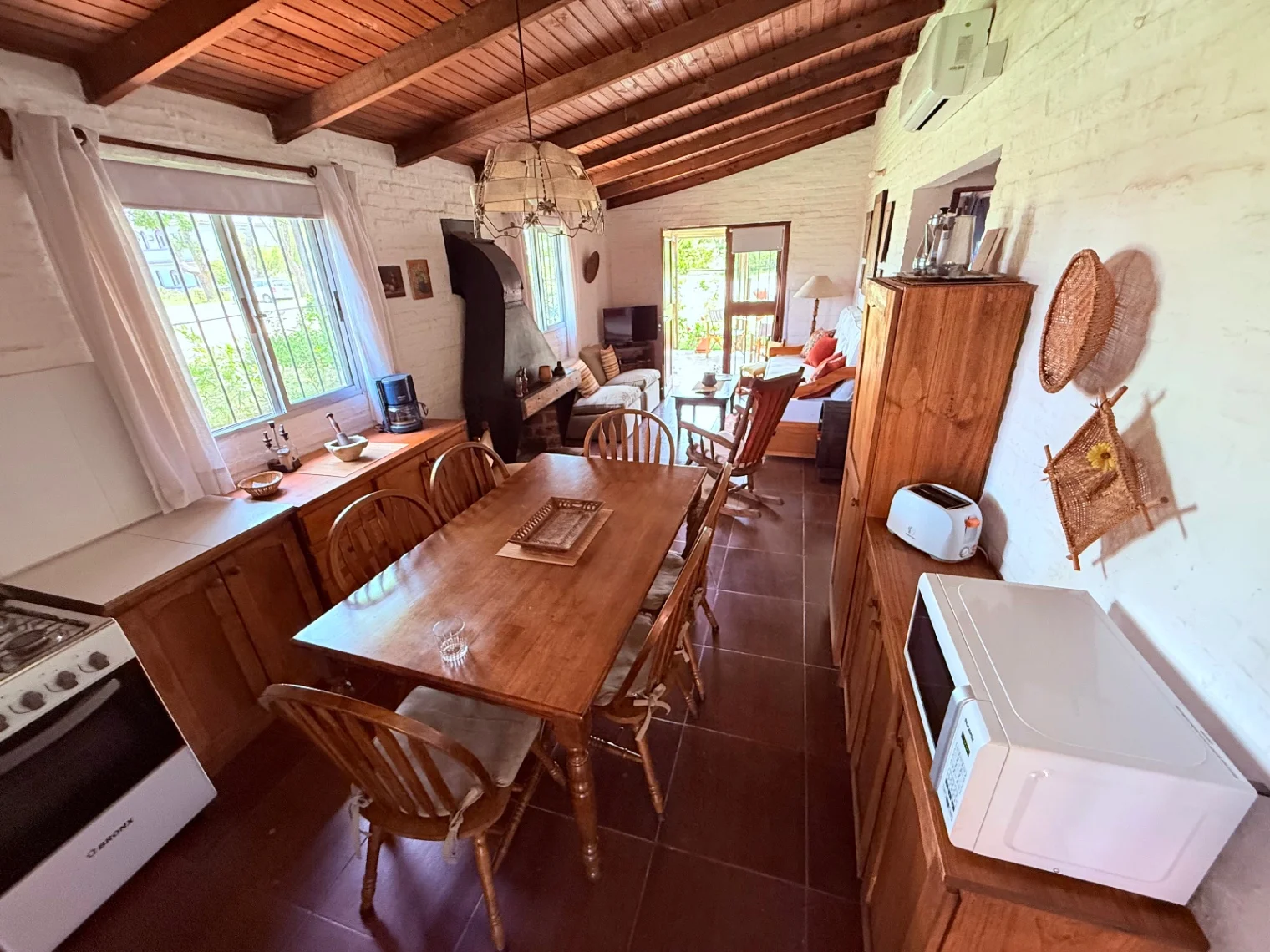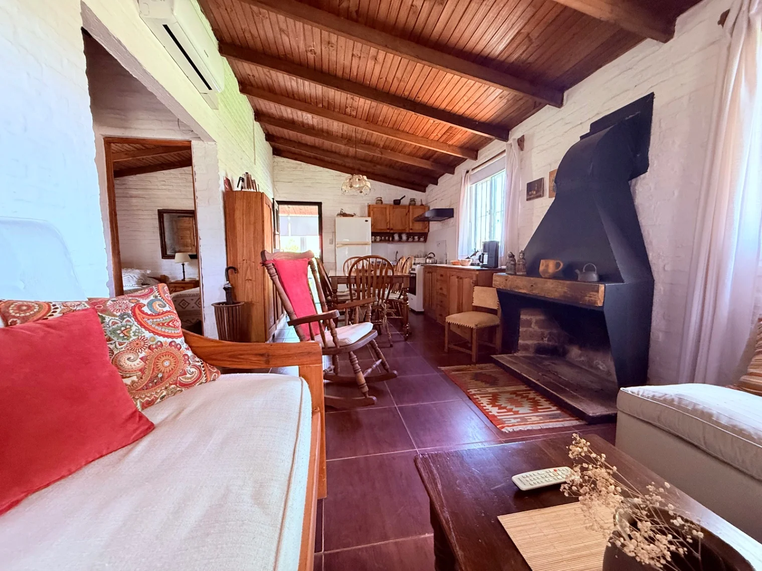 La casa cuenta con un amplio y hermoso jardín para disfrutar, una parte techada y luego mucho verde y flores. Un cómodo living comedor con estufa a leña, mucho sol y luz durante todo el día y el año, cocina integrada al living para disfrutar mas de la compañía, dos acogedores dormitorios, un baño completo, creando un ambiente cálido y acogedor. Estar con parrillero cerrado... aire acondicionado, conexión a Internet, teléfono, y un sistema de alarma. Además, el jardín y el área verde invitan a disfrutar del aire libre, mientras que la parrilla asegura momentos de diversión y asados en compañía.