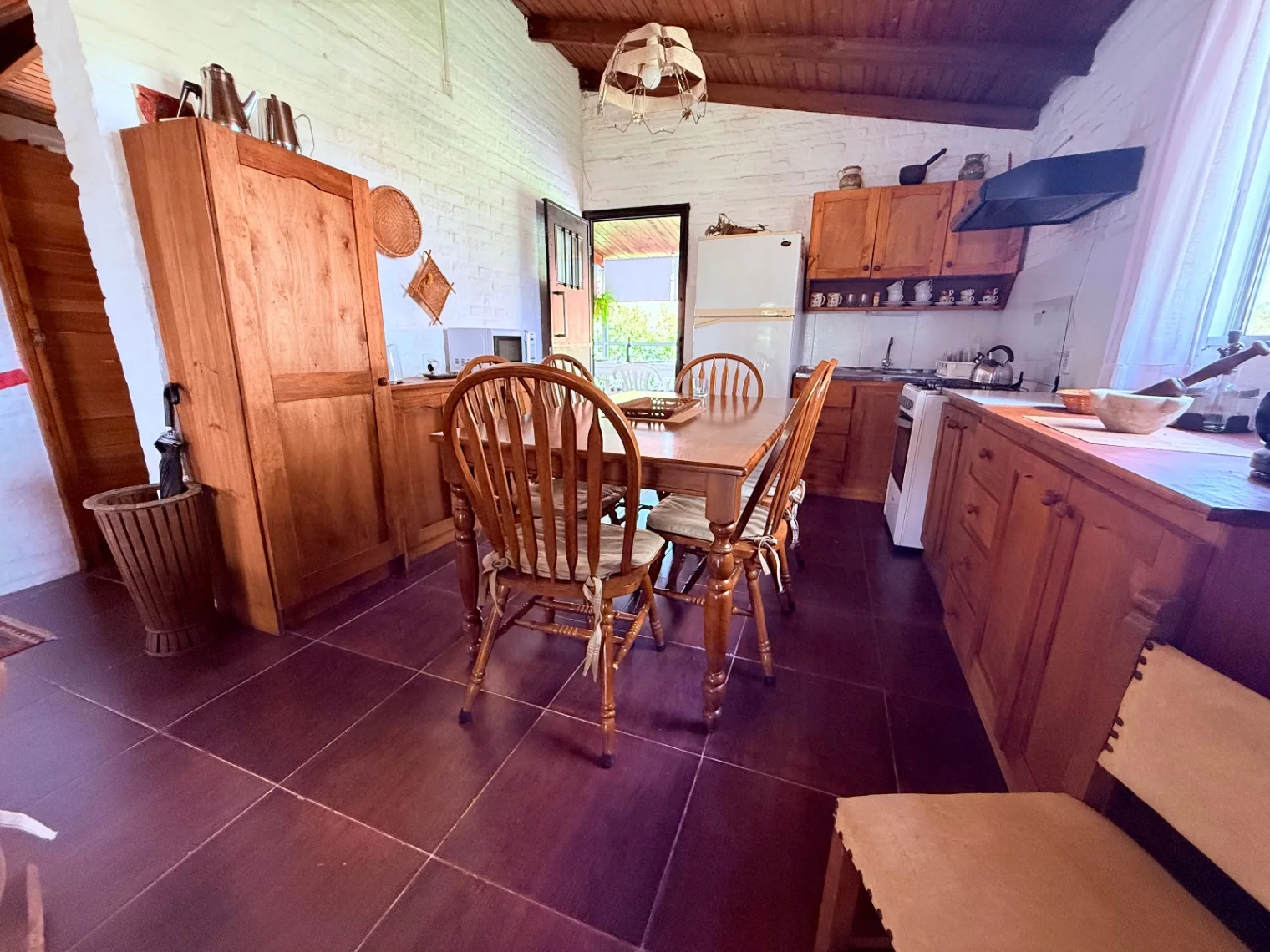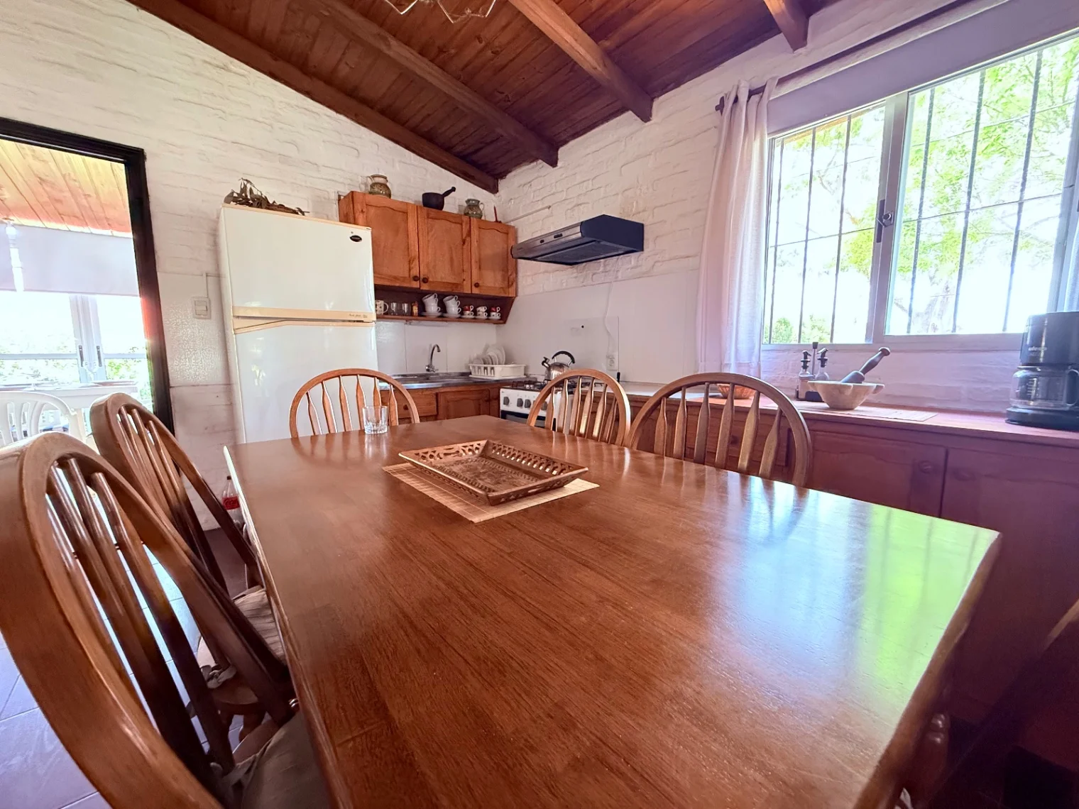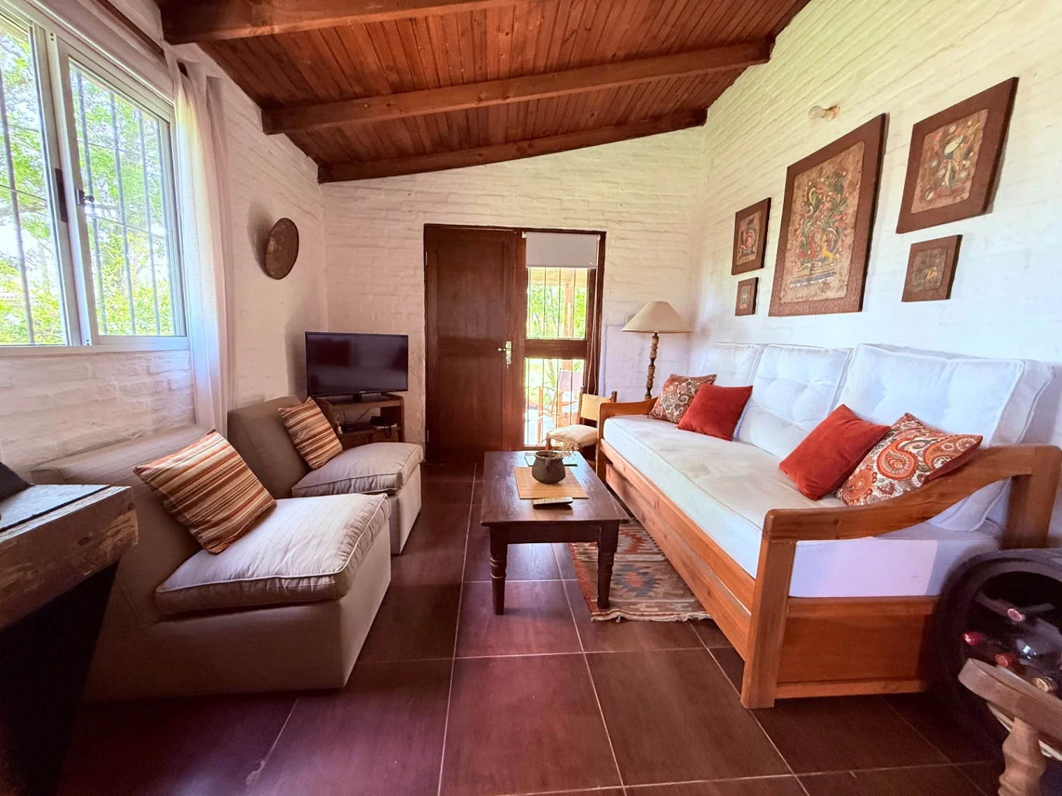 La casa cuenta con un amplio y hermoso jardín para disfrutar, una parte techada y luego mucho verde y flores. Un cómodo living comedor con estufa a leña, mucho sol y luz durante todo el día y el año, cocina integrada al living para disfrutar mas de la compañía, dos acogedores dormitorios, un baño completo, creando un ambiente cálido y acogedor. Estar con parrillero cerrado... aire acondicionado, conexión a Internet, teléfono, y un sistema de alarma. Además, el jardín y el área verde invitan a disfrutar del aire libre, mientras que la parrilla asegura momentos de diversión y asados en compañía.
