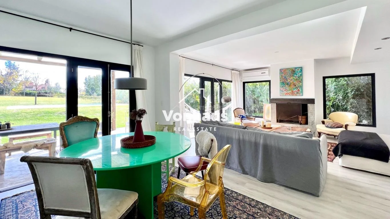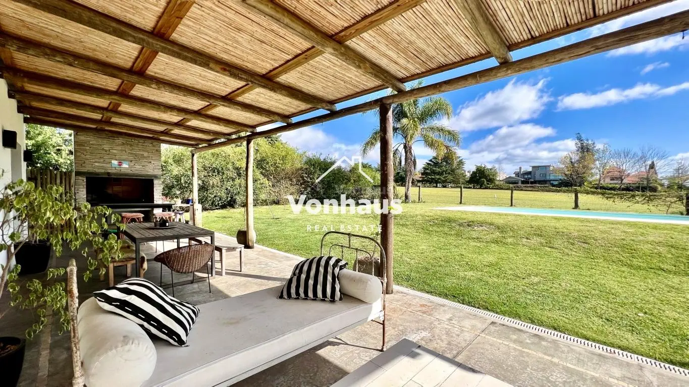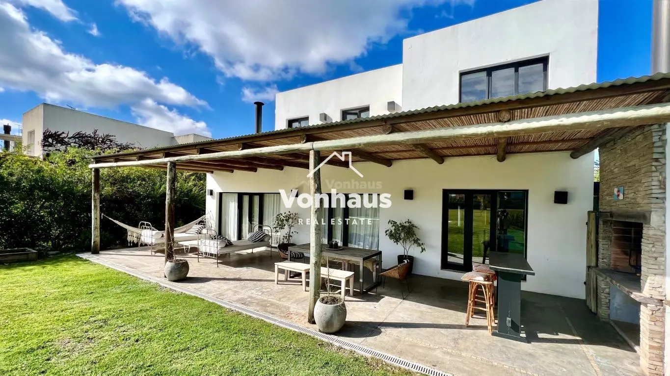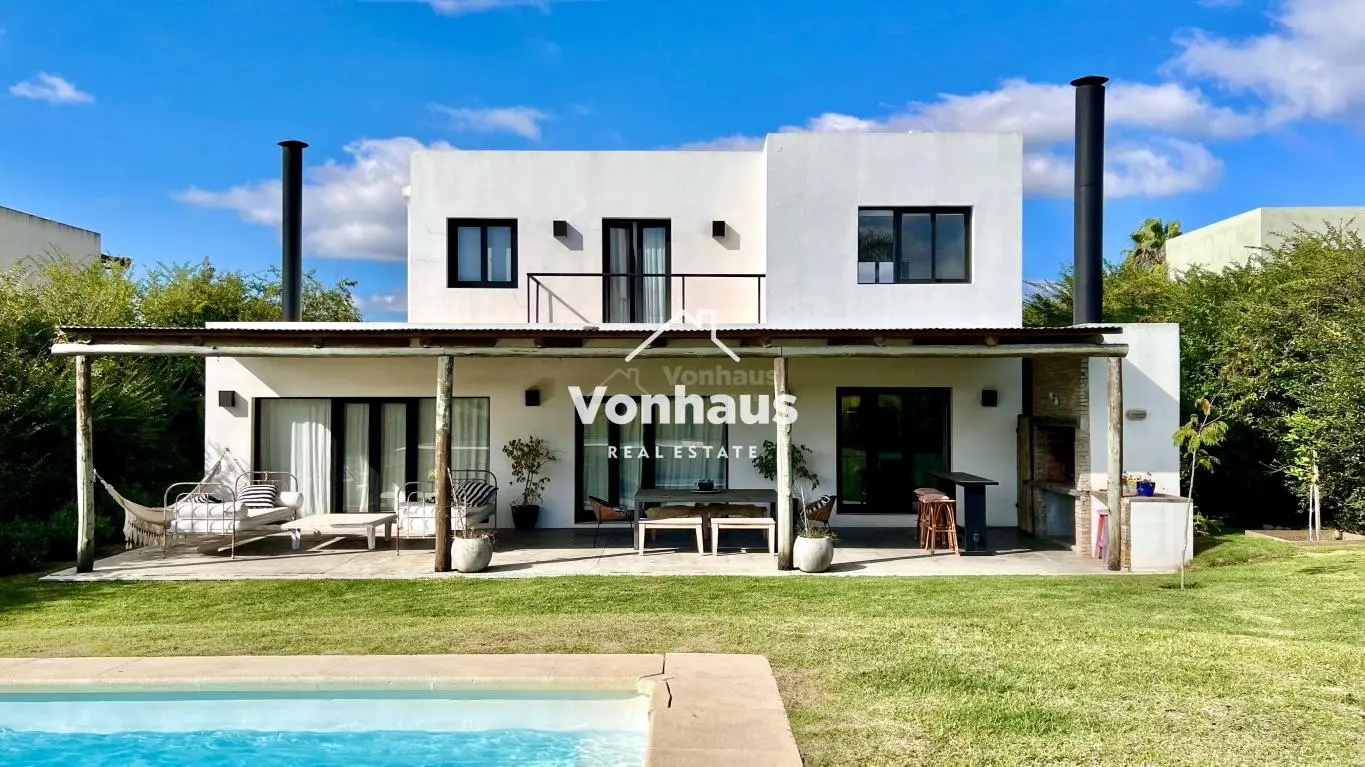 En barrio privado lomas de la Tahona. En impecable estado. Pronta para entrar! Amplio hall de entrada, living comedor con estufa a leña y salida al jardin. Estar diario, baño social, cocina de buen tamaño conectada al comedor y al parrillero. En planta alta 3 dormitorios y 2 baños (principal en suite con vestidor). Dependencia de servicio y lavadero con entrada independiente. Jardin con excelente orientación, piscina y gran galeria techada com parrillero. Consultanos por whatsapp y te respondemos al instante! Vonhaus Real Estate